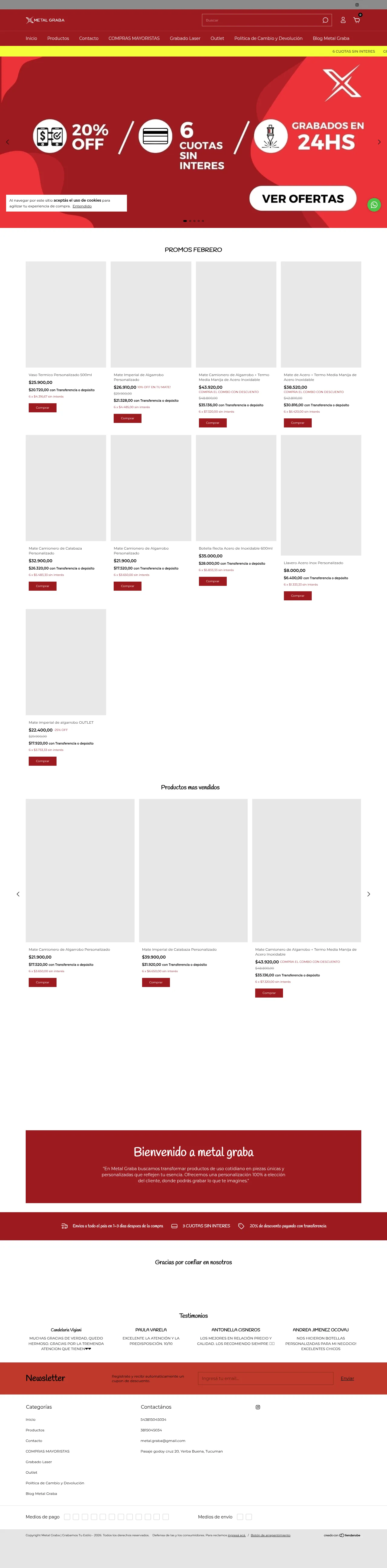 Metal Graba is a customization specialist focused on applying laser engraving services to a variety of everyday consumer products. The company serves individuals and corporate clients by providing personalized solutions for gifts, institutional merchandising, and promotional marketing events. Their primary service offering includes precision laser engraving on items such as thermoses, mate cups, glassware, and wooden accessories. The company emphasizes a flexible approach, allowing for custom designs on both retail and wholesale orders. With a facility based in Yerba Buena, Tucuman, they provide logistics support for distribution across Argentina.