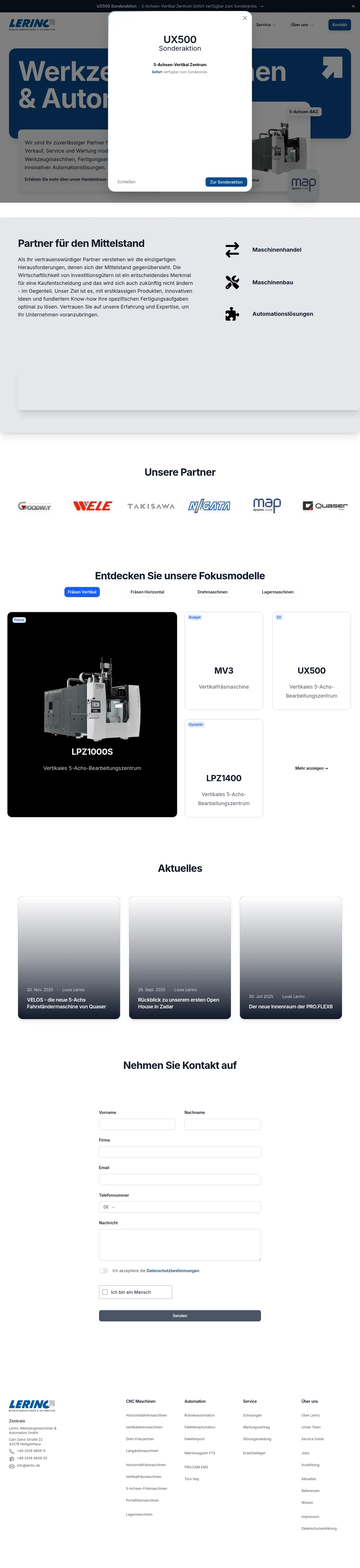Lerinc Innovative Technologien GmbH is a provider of advanced machine tools, manufacturing equipment, and automation solutions. The company specializes in the distribution and service of CNC machinery, including turning centers, milling machines, and 5-axis machining centers. In addition to hardware sales, Lerinc offers comprehensive technical support, customized training, and turnkey manufacturing integration. They serve a diverse industrial client base with a focus on optimizing production efficiency and process reliability. The company maintains multiple locations across Germany to ensure regional support, spare parts availability, and expert maintenance services.