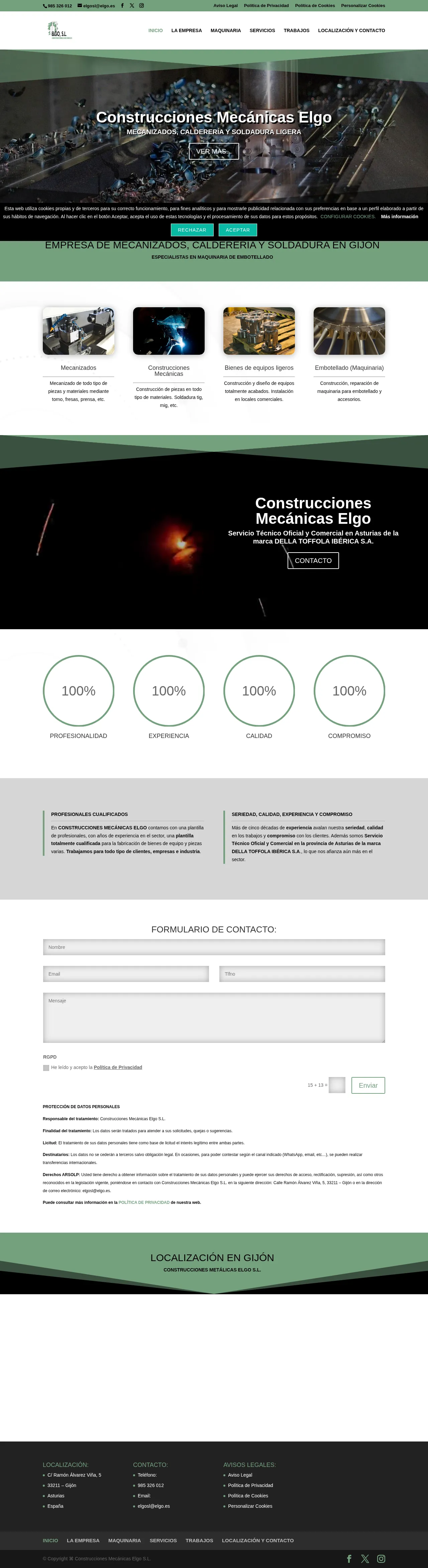 Construcciones Mecánicas Elgo S.L. specializes in machining, sheet-metal fabrication (calderería) and light welding. The company performs turning, milling and press work for a wide range of parts and equipment. It also provides technical service for bottling machinery as the official Della Toffola service representative in the province of Asturias and has over fifty years of industry experience.