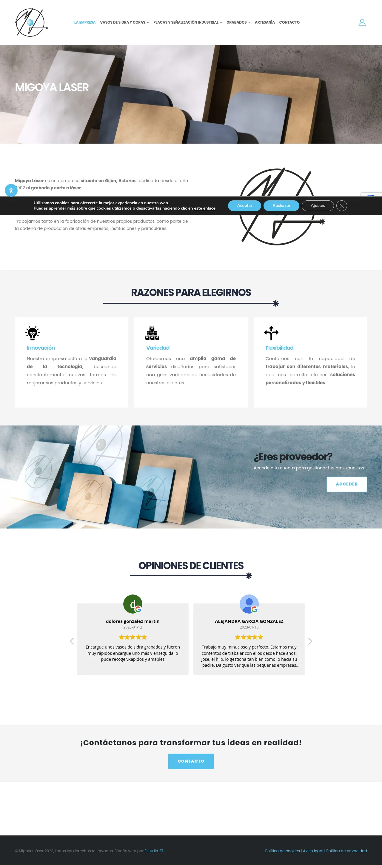 MIGOYA LASER is a laser processing company based in Gijón, Asturias. Founded in 2002, it provides laser cutting and engraving services as part of the production chain for businesses, institutions and private clients. The company works with different materials to deliver tailored cutting and engraving solutions.