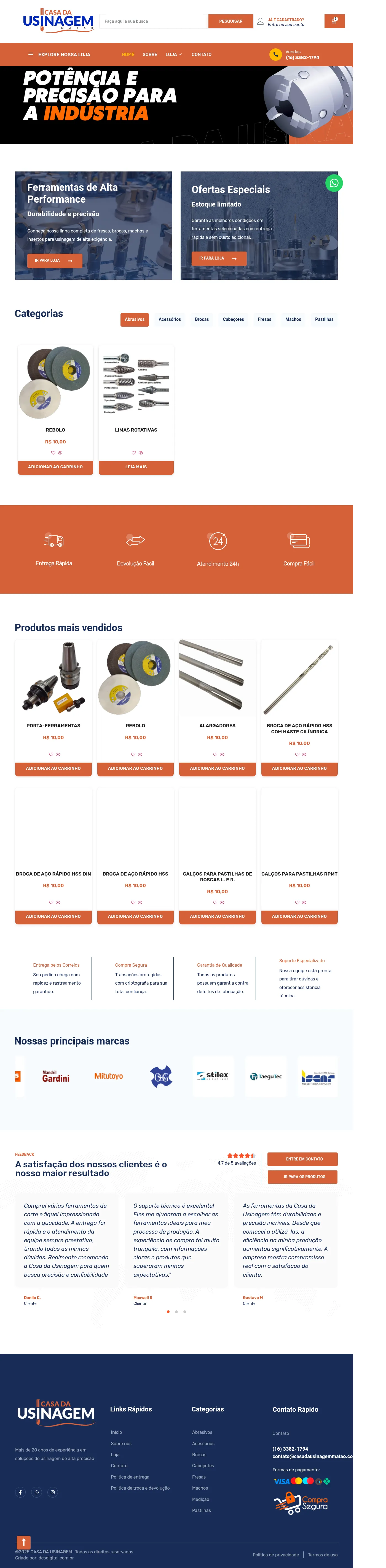 Casa da Usinagem de Matão is a provider of precision machining solutions and industrial cutting tools with over 20 years of experience. The company supplies a wide range of products including drills, taps, inserts, measuring instruments, and tool holders for various industrial applications. They emphasize quality and efficiency by sourcing products from authorized manufacturers and distributors. The company offers specialized technical support to assist clients in selecting the appropriate tooling for their production processes. Services are provided with an emphasis on rapid delivery and secure transaction standards for industrial clients across Brazil.