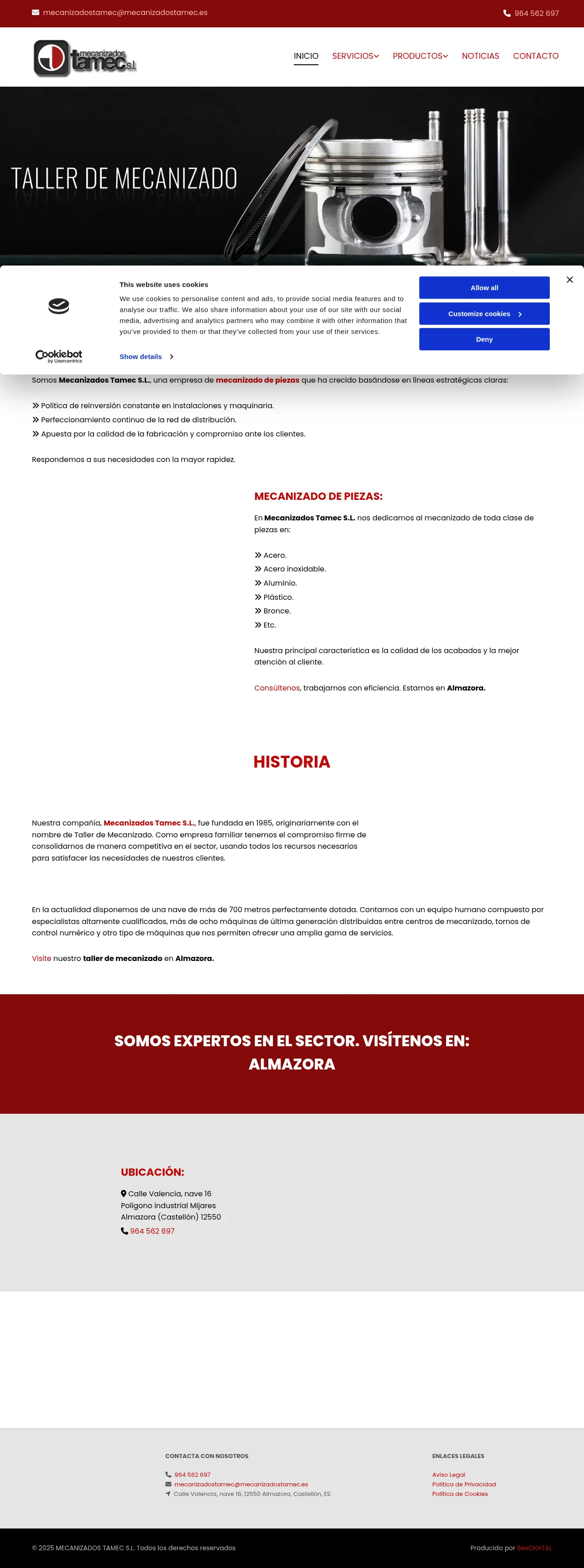 Carrer Valencia, 16 NAVE, 12550 Almassora, Castelló, Spain, Almassora, Comunitat Valenciana, Kingdom of Spain964 56 26 97mecanizadostamec@mecanizadostamec.eshttp://www.mecatamec.com/