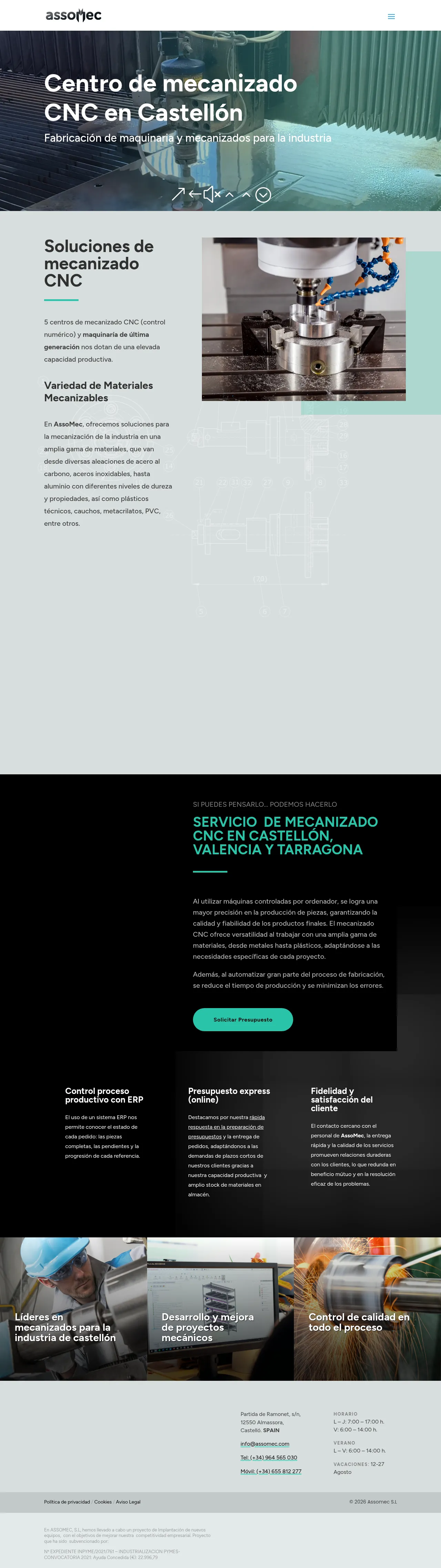 ASSOMEC S.L. is an industrial manufacturing firm based in Almassora, Spain, specializing in high-precision CNC machining and mechanical engineering services. The company provides comprehensive solutions for the industrial sector, including machining, welding, and cold cutting through water jet technology. They utilize advanced ERP systems to manage production workflows, ensuring quality control and reliable project tracking. With a focus on versatility, the firm processes a wide range of metals and technical plastics to meet specific client requirements. Their service model emphasizes rapid response times and close technical collaboration to facilitate the development and repair of mechanical components.