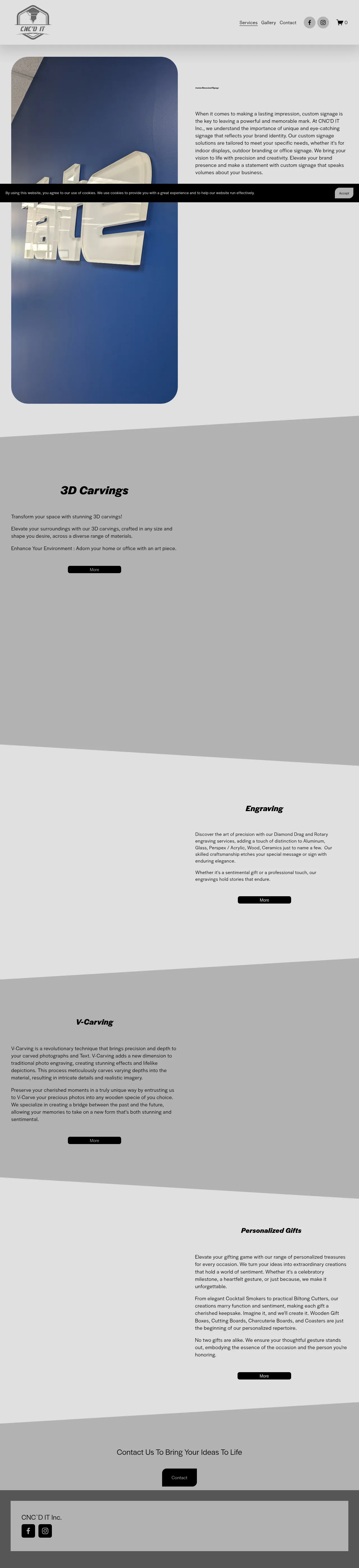 CNC'D IT Inc. is a precision manufacturing company specializing in custom signage, decorative 3D carvings, and personalized engraving services. They cater to both corporate branding needs and individual gift-giving, transforming concepts into tangible wooden and mixed-media products. The company employs advanced techniques such as V-Carving and rotary engraving to create detailed, high-quality finishes on a variety of substrates. Their craftsmanship blends functionality with sentiment, producing items ranging from signage and displays to specialized keepsakes and lifestyle accessories. By combining artistic design with technical machining, they provide custom solutions for diverse residential and commercial applications.