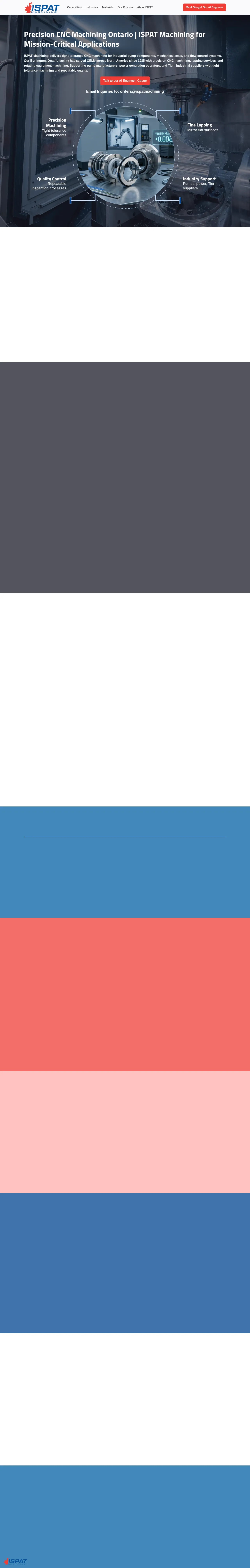 Established in 1985 and based in Burlington, Ontario, ISPAT Machining provides precision CNC machining services for mission-critical industrial components. The company specializes in the production of parts for centrifugal pumps, mechanical seals, and flow-control systems, serving sectors such as power generation, automotive, and general industrial manufacturing. Their core capabilities include multi-axis milling, turning, and fine lapping to achieve tight dimensional tolerances and high-quality surface finishes. ISPAT differentiates itself through rigorous quality control, material-specific programming strategies, and technical engineering support for OEM supply chains. By maintaining process consistency from prototyping through production, the firm ensures reliability for sealing interfaces and high-performance equipment.