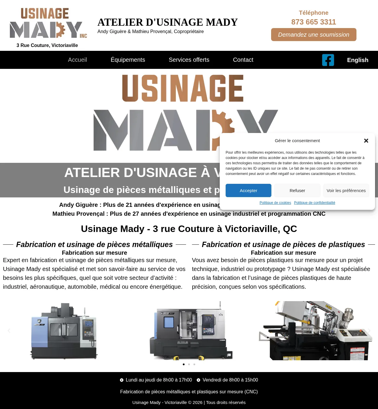 3 Rue Couture, Victoriaville, QC G6S 1A5, Canada, Victoriaville, Québec, Canada(873) 665-3311https://usinagemady.com/