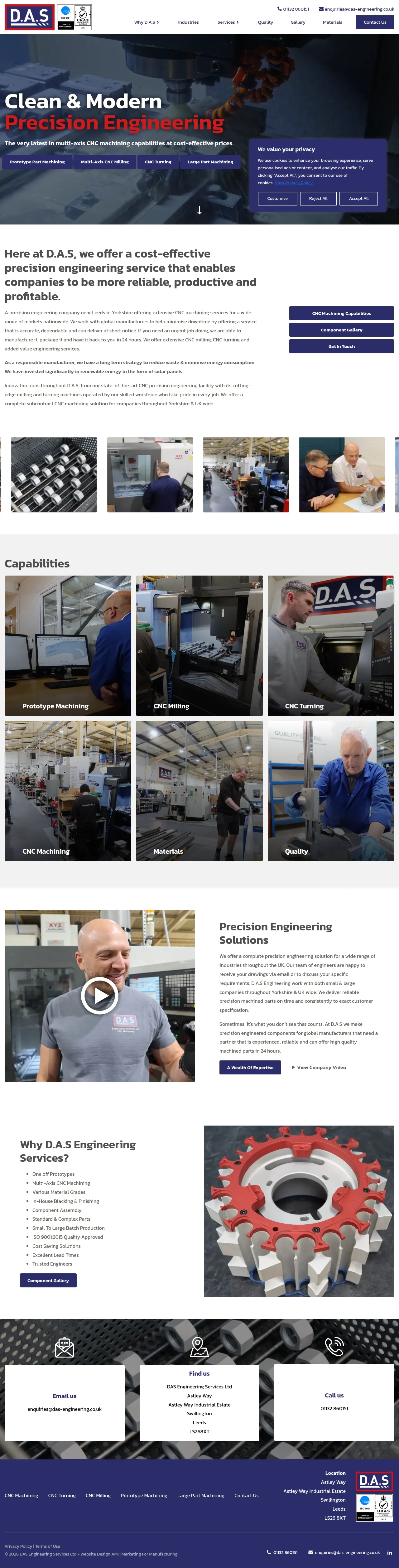 D.A.S. Engineering Services is a precision engineering company based in Leeds, Yorkshire, specializing in comprehensive CNC machining solutions. The firm offers a range of services including multi-axis CNC milling, turning, and prototype machining for various industrial sectors such as packaging, graphics, food and beverage, and pharmaceuticals. They are equipped to handle projects from one-off prototypes to small and large batch production, supported by in-house finishing and assembly facilities. The company distinguishes itself through a focus on rapid turnaround, including 24-hour service capabilities, and provides additional value-added processes like heat treatment and chemical finishing. With a commitment to quality and technical expertise, D.A.S. supports global manufacturers by minimizing downtime through reliable and accurate manufacturing processes.