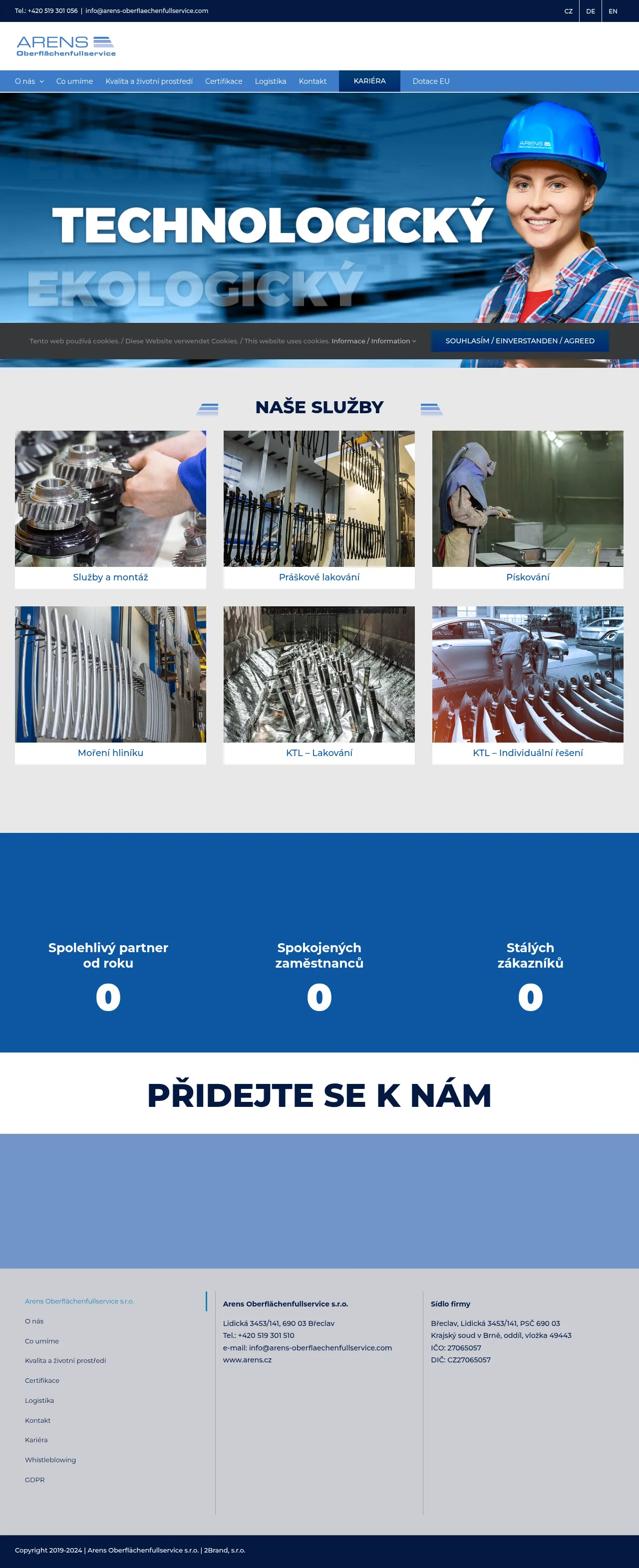 Arens Oberflächenfullservice s.r.o. specializes in comprehensive surface treatment and industrial coating solutions. The company provides advanced metal finishing services including cathodic dip painting, powder coating, and various chemical pre-treatment processes. Their expertise covers specialized surface preparations such as zinc phosphating, aluminum pickling, and abrasive blasting. Serving a diverse client base, Arens focuses on high-quality protective and aesthetic finishing for metal components. The facility operates with a commitment to environmental standards and consistent quality management.