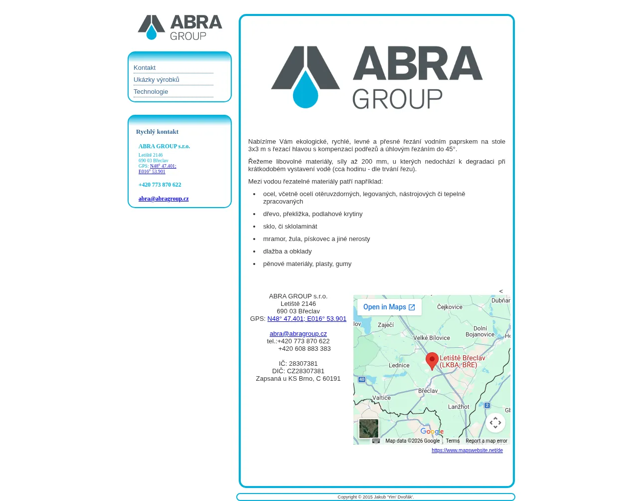 ABRA GROUP s.r.o. specializes in precision waterjet cutting services. The company processes a diverse range of materials, including metals, stone, glass, and polymers. They serve various industrial and architectural sectors requiring custom-cut components. Utilizing advanced technology, the company ensures high-quality results for complex shapes and varied material thicknesses. Their facility is located in Břeclav, providing manufacturing solutions tailored to client specifications.