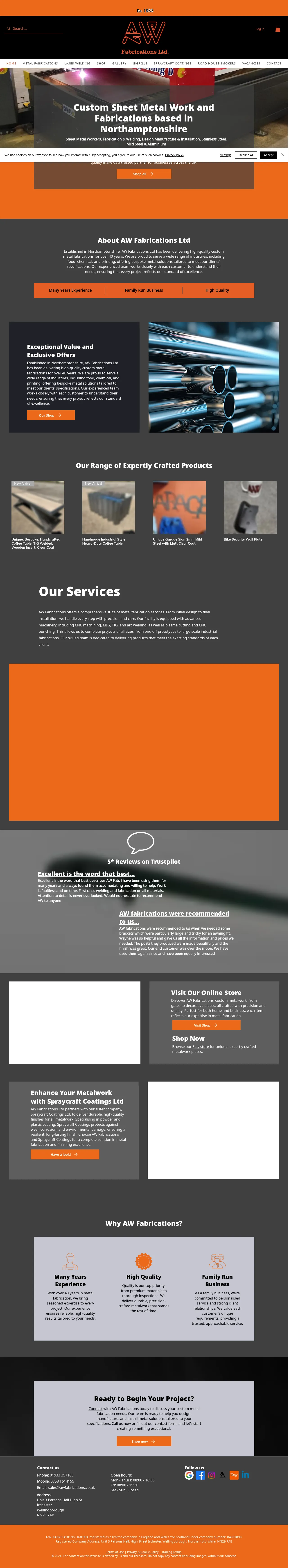 AW Fabrications Ltd is a family-run business based in Wellingborough, established in 1983. The company specializes in bespoke metal fabrication, including architectural ironwork, custom parts, and industrial components. They serve a wide range of sectors, such as food production, chemical processing, and printing, alongside private commercial and residential clients. Their capabilities span design, welding, and installation, supported by an internal facility that provides finishing services like powder and plastic coating. With over 40 years of experience, the firm is known for precision engineering and consistent quality management across one-off prototypes and large-scale fabrications.