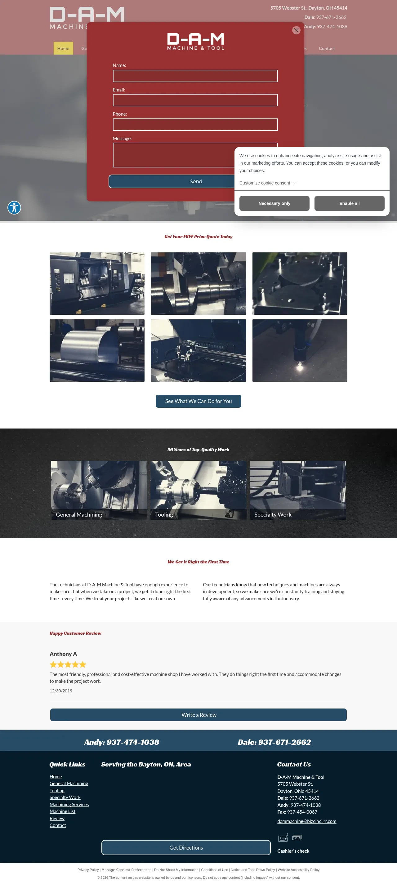 DAM Machine is a full-service machine shop based in Dayton, Ohio, providing high-quality machining, fabrication, and tooling solutions. With over 56 years of combined industry experience, the company specializes in precision manufacturing for a wide range of metal and plastic parts. Their capabilities include general machining, laser cutting, welding, and various specialty surface treatments. Committed to precision and reliability, the firm serves clients requiring everything from single prototype parts to production-level tooling components. They prioritize continuous technical training to ensure all projects meet modern industry advancements and exacting quality standards.