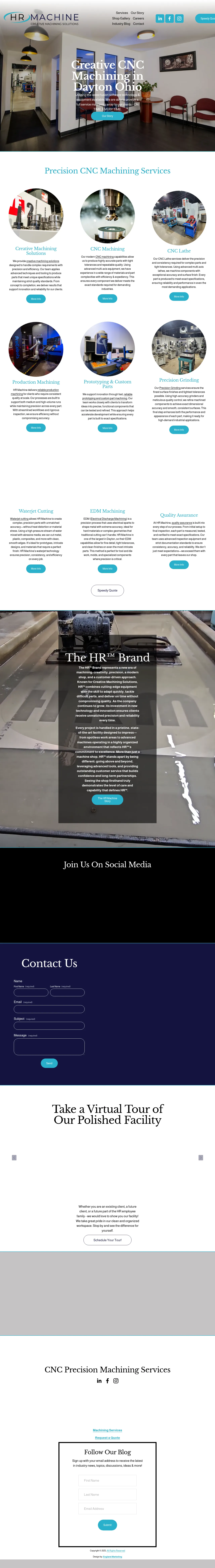 HR Machine is a precision manufacturing facility located in Dayton, Ohio, specializing in CNC machining and custom part production. The company provides a range of services including multi-axis turning, precision grinding, waterjet cutting, and electrical discharge machining (EDM). They serve various industries by handling both rapid prototyping and high-volume production requirements with a focus on strict quality control and dimensional accuracy. Their facility emphasizes modern, clean-shop operations to maintain process transparency and manufacturing excellence. The team works closely with clients to deliver technical solutions tailored to complex geometric specifications.