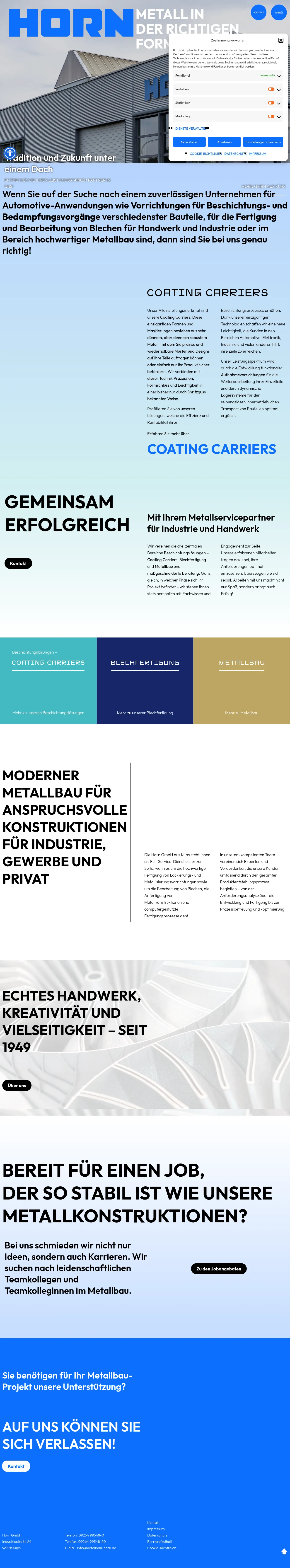 Horn Metallbau GmbH is a family-owned manufacturer based in Küps, Germany, specializing in precision metalwork and industrial solutions. The company provides a full range of services including sheet metal fabrication, structural metal construction, and the development of specialized coating and vaporization carriers. Serving sectors such as automotive, electronics, and general industry, they support the entire product lifecycle from initial design and requirement analysis to final production. Their expertise in precision manufacturing and internal logistics systems helps clients improve process efficiency and product quality. The company has been active in the metalworking industry since 1949, combining traditional craftsmanship with modern production technology.