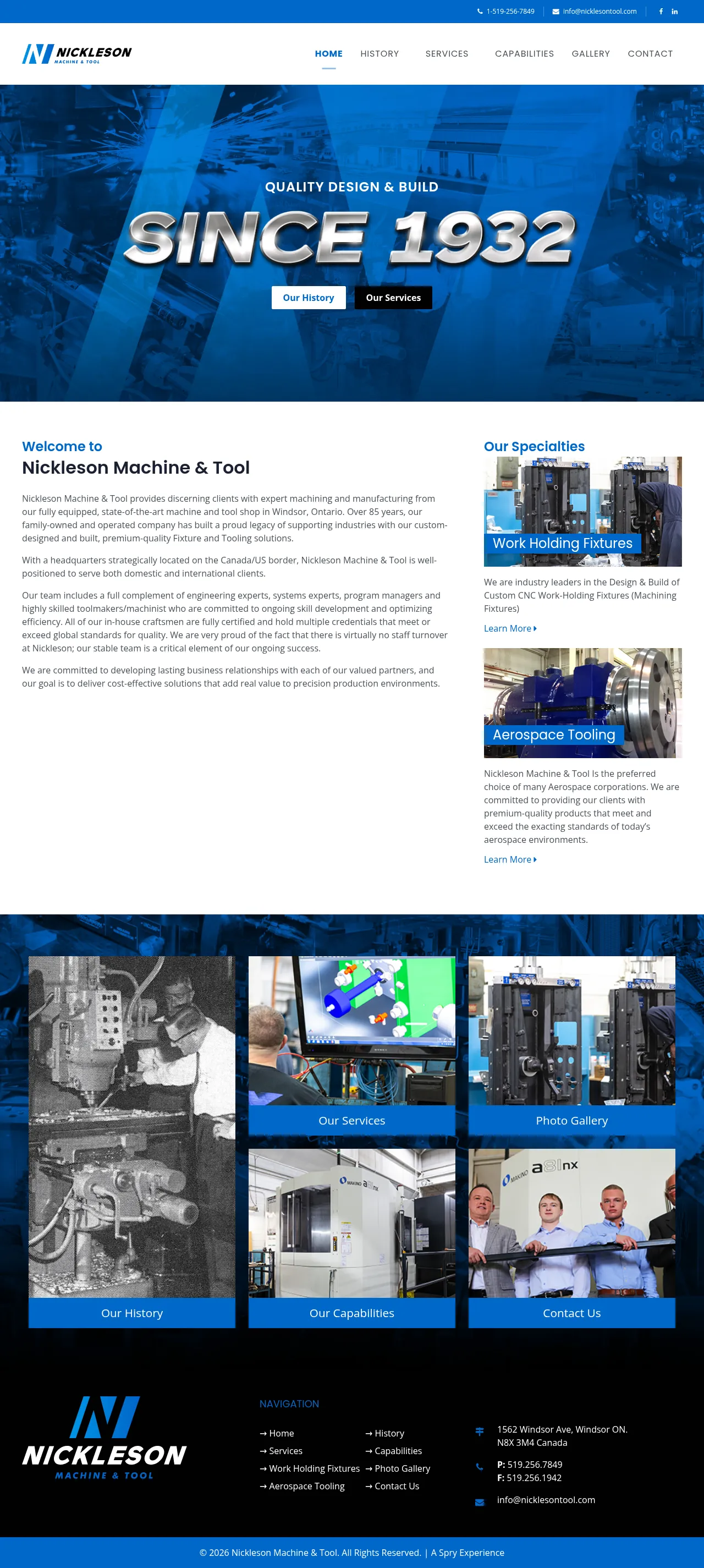 Nickleson Machine and Tool is an industrial manufacturer specializing in the engineering and production of custom work-holding fixtures for diverse sectors, including automotive, aerospace, and agricultural industries. With over 85 years of experience, the company provides comprehensive solutions ranging from concept development and design to precision manufacturing and assembly. Their facility houses a wide array of high-precision CNC equipment to support services such as contract machining, spare part manufacturing, and specialized tooling production. The company is committed to maintaining client confidentiality while delivering high-quality, cost-competitive solutions tailored to build-to-print requirements.