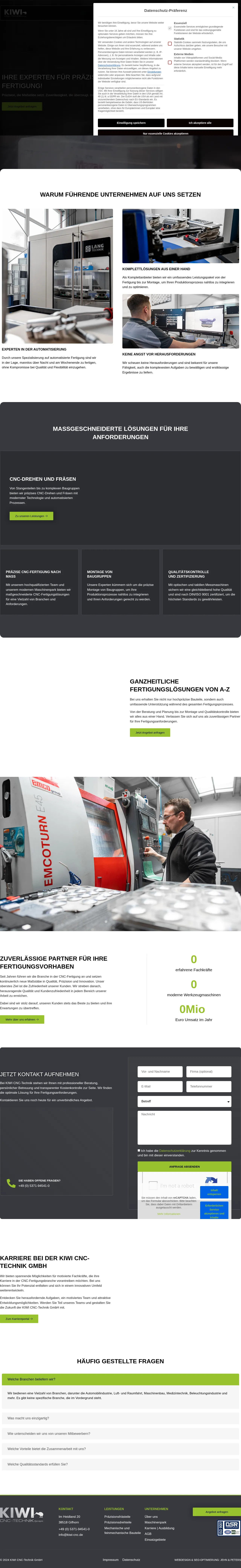 KIWI CNC-Technik GmbH is a specialist in precision CNC manufacturing, offering comprehensive solutions from design and planning to assembly and quality control. The company utilizes a modern machine park with automated processes to enable lights-out production, ensuring efficiency and flexibility for both small and large-scale projects. They serve a diverse client base across industries including automotive, aerospace, medical technology, mechanical engineering, and lighting. With a focus on technical precision and reliability, the firm provides complex mechanical components and assembly services. Their commitment to quality is supported by rigorous measurement protocols and professional project management.