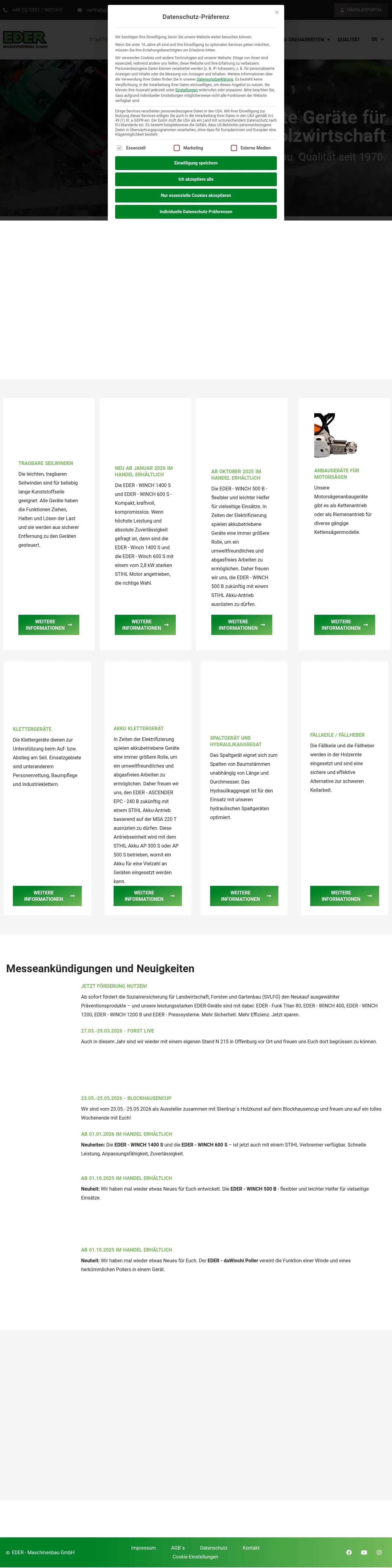 EDER - Maschinenbau GmbH is a Germany-based manufacturer specializing in the development and production of innovative forestry equipment and industrial components. The company provides a range of portable winches, climbing devices, felling wedges, and chainsaw attachments designed for the forestry, timber, and emergency services sectors. Beyond their proprietary product lines, the company maintains high vertical integration in their Wolfenbüttel facility, offering contract manufacturing services. Their industrial capabilities encompass turning, milling, and drilling, with a specific expertise in machining cast aluminum components. The firm focuses on delivering high-reliability solutions, integrating modern technology and sustainable practices, such as on-site photovoltaic power generation, into their operations.