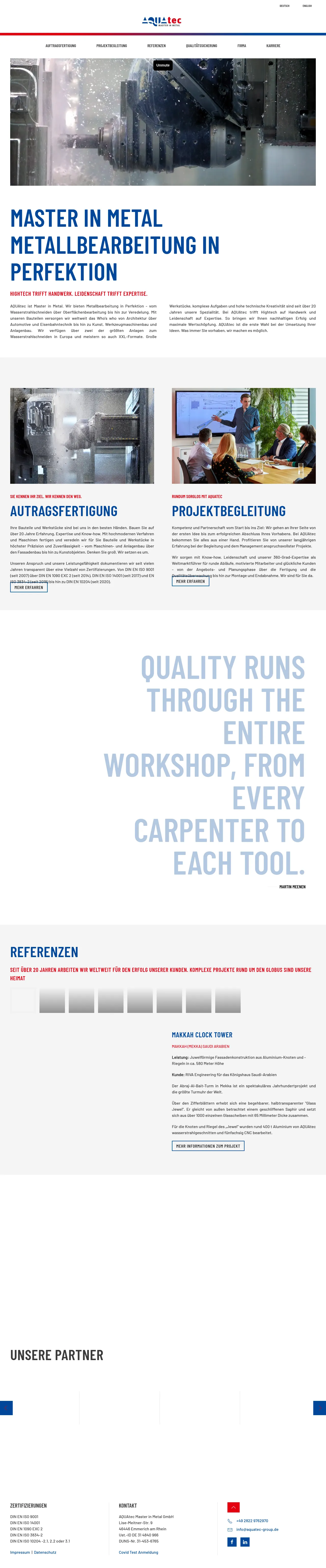 AQUAtec Master in Metal is a specialized provider of precision metal processing services, including large-scale waterjet cutting, CNC machining, and surface finishing. Serving diverse sectors such as architecture, automotive, rail transport, and heavy machinery, the company possesses the capability to handle complex, XXL-format workpieces. With over two decades of experience, they provide end-to-end project support from design through to assembly and quality inspection. The firm is recognized for its technical expertise in managing demanding global engineering projects and maintaining high production standards. AQUAtec integrates advanced technological processes with skilled craftsmanship to ensure optimal material utilization and structural integrity.