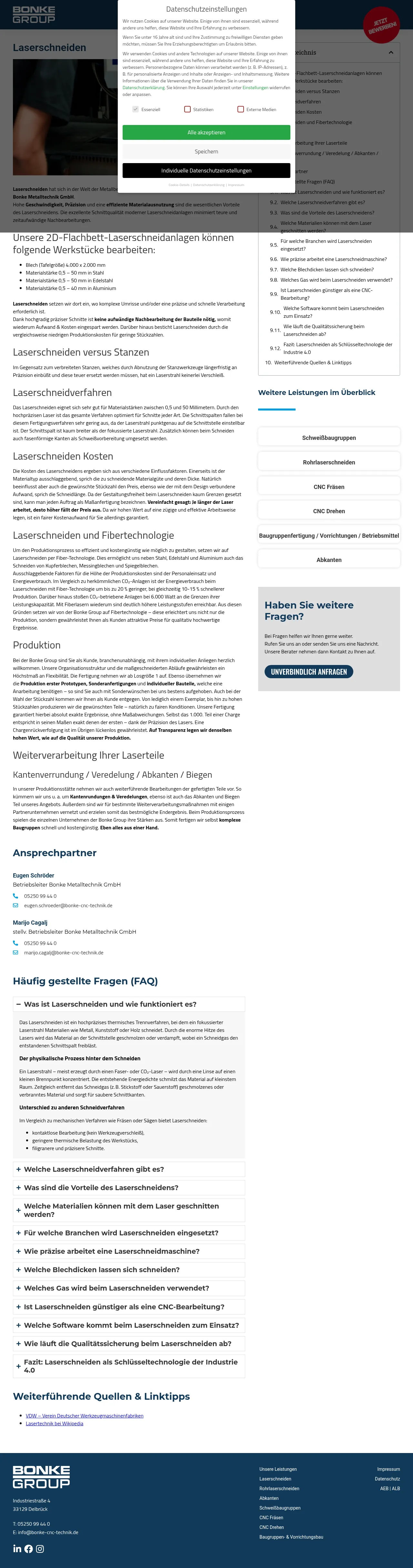 Bonke Metalltechnik GmbH specializes in high-precision laser cutting, metal fabrication, and comprehensive CNC machining services. The company utilizes advanced laser technology and automated software systems to deliver complex assemblies, prototypes, and customized components for industries including aerospace, automotive, and medical technology. Their facility is equipped to handle a wide range of materials and thicknesses, maintaining high standards of quality through rigorous inspection and documentation processes. Committed to efficiency and accuracy, they provide end-to-end manufacturing solutions from project design to finished production. Their expertise covers diverse cutting, forming, and assembly techniques, ensuring consistent quality for both small and large-scale industrial requirements.