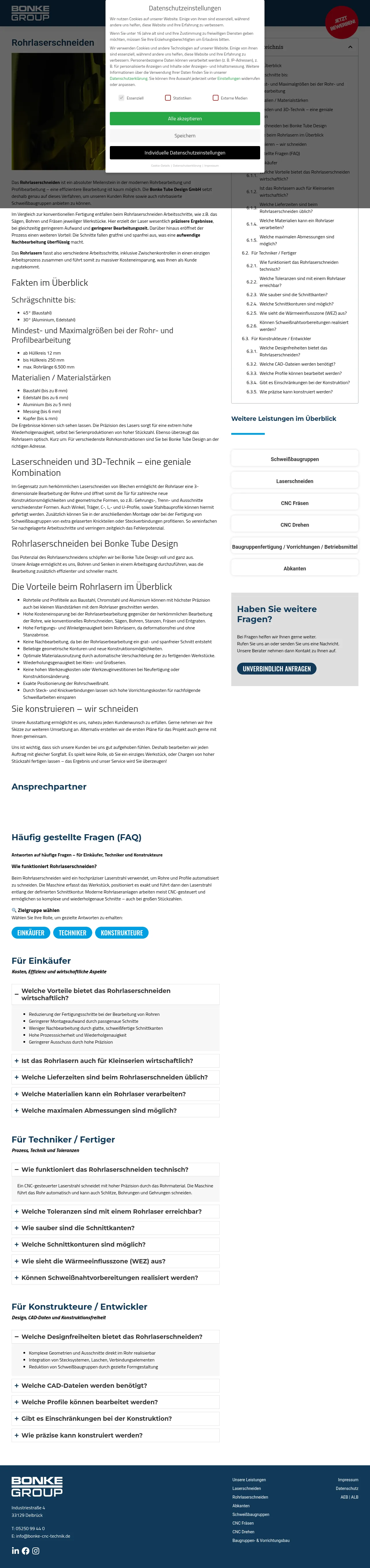 Bonke Tube Design GmbH specializes in high-precision laser tube cutting and comprehensive metal fabrication services. Their capabilities encompass advanced tube processing, including intricate contour cutting, drilling, and tapping, suitable for a wide range of circular, rectangular, and custom profiles. The company serves clients requiring both prototype development and high-volume production, offering expert support from initial conceptual planning to final manufacturing. By utilizing automated CNC-controlled laser technology, they deliver components with high dimensional accuracy and clean, weld-ready edges that reduce the need for secondary processing. Their facility is equipped to handle complex geometric designs, enabling efficient fabrication for diverse industrial applications.