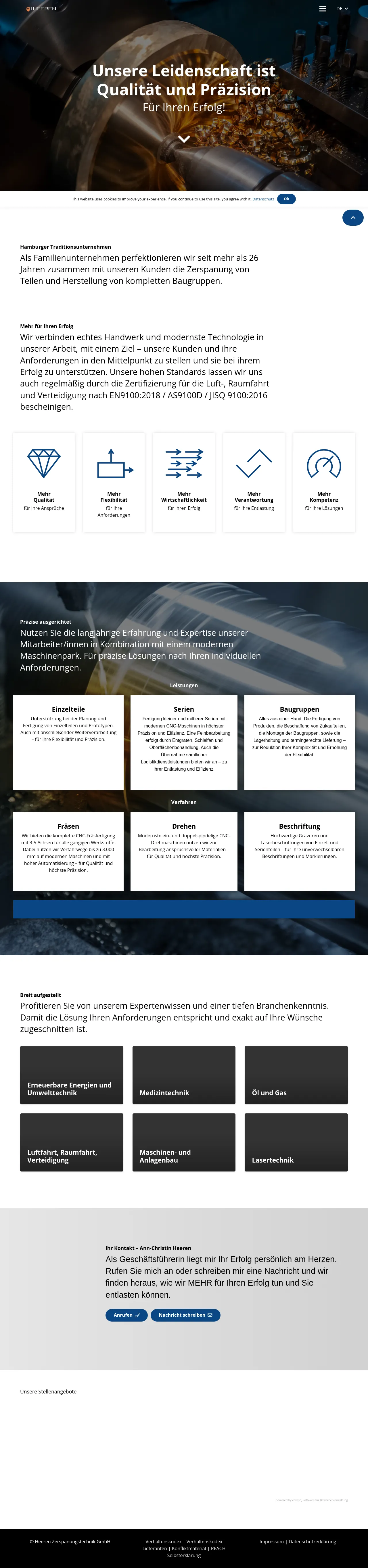 Heeren Zerspanungstechnik GmbH is a family-owned manufacturing enterprise based in Hamburg with over 26 years of experience in precision machining and assembly production. The company specializes in CNC milling, turning, and component marking, serving industries including aerospace, defense, medical technology, renewable energy, and mechanical engineering. They provide support from initial prototyping to the production of small and medium series, including assembly and logistics management. Committed to high quality and precision, the facility operates under international aerospace standards to meet rigorous technical requirements. The company emphasizes a client-focused approach that integrates advanced technology with traditional craftsmanship to deliver custom-tailored industrial solutions.