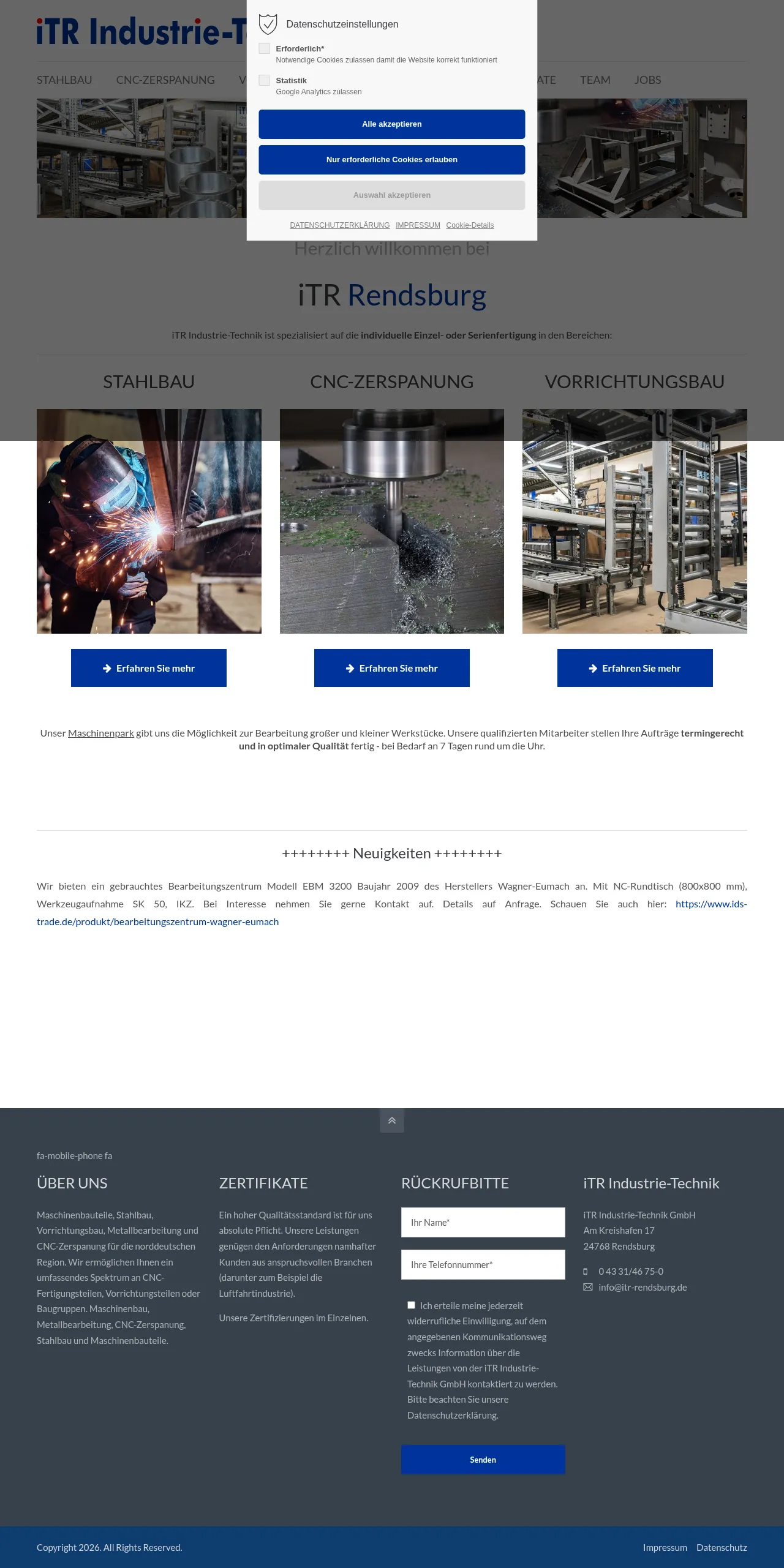 iTR Industrie-Technik GmbH is a specialist manufacturing firm located in Rendsburg, providing comprehensive services in mechanical engineering, steel construction, and CNC machining. The company serves a diverse range of demanding sectors, including the aerospace industry, by delivering high-precision components and assemblies. Their production capabilities support both individual custom parts and large-scale series manufacturing for projects of varying sizes. With a commitment to stringent quality standards, the company offers flexible production schedules to meet urgent delivery requirements. Their facility is equipped to handle complex metalworking tasks with professional oversight and technical precision.