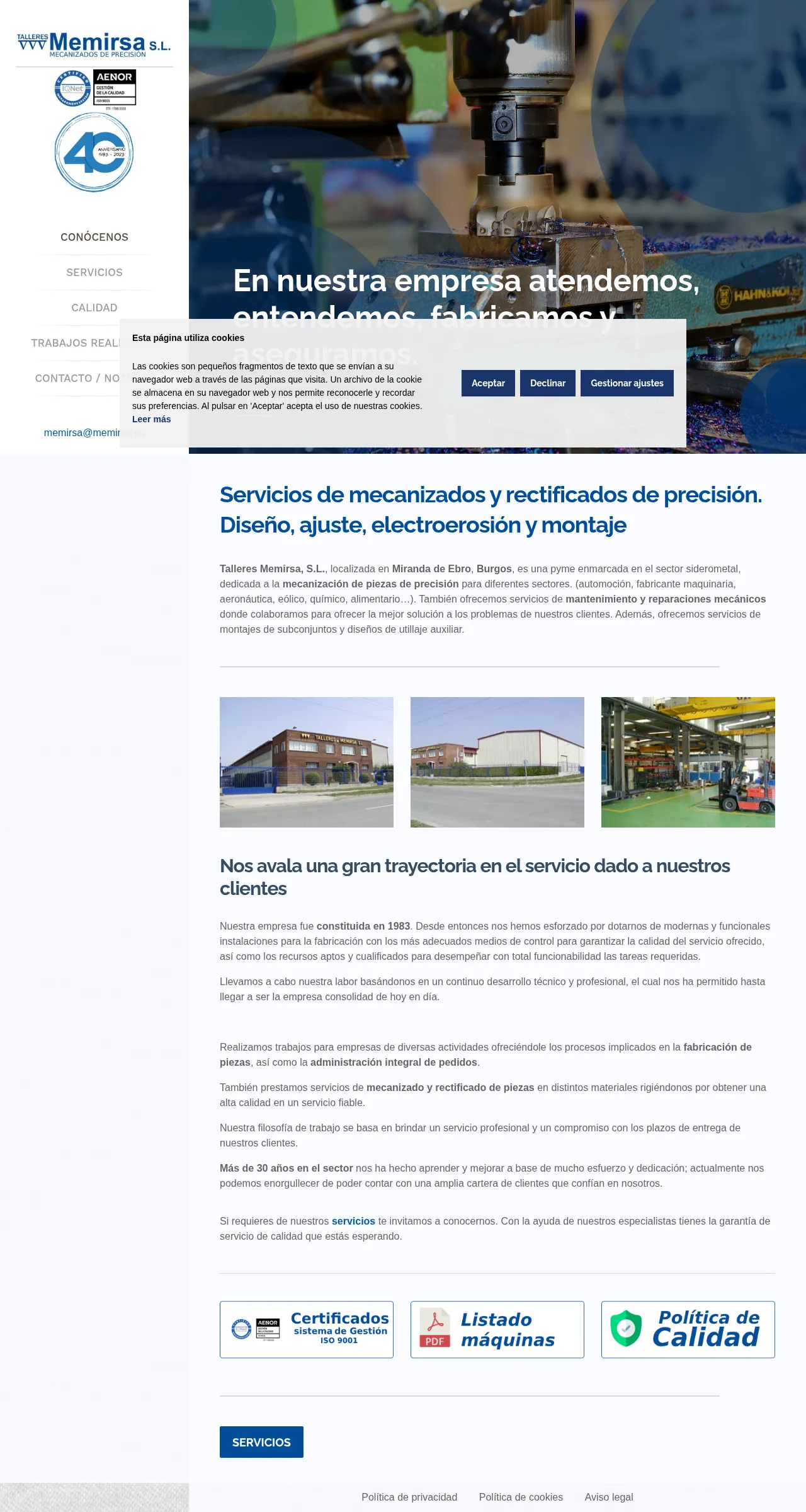 Established in 1983, Talleres Memirsa, S.L. is an industrial metalworking company specializing in high-precision machining and grinding. The company provides a range of manufacturing services, including CNC machining, electro-discharge machining (EDM), assembly of sub-assemblies, and auxiliary tool design. They serve a diverse client base across sectors such as automotive, aeronautics, wind energy, food production, and machinery manufacturing. With a focus on technical development and continuous improvement, the company utilizes modern facilities and advanced metrology to ensure quality and reliability. Talleres Memirsa is committed to delivering professional service and meeting strict client project timelines.
