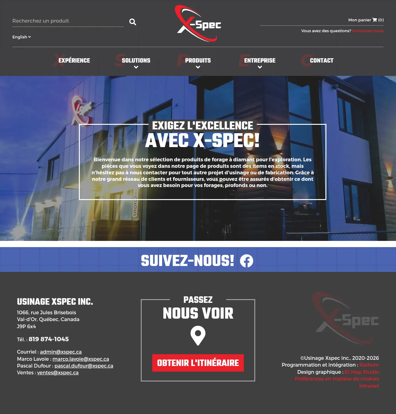 Usinage Xspec inc. is a precision manufacturing company specializing in components for the diamond drilling and mineral exploration sectors. The company provides comprehensive machining services, including CNC machining and custom 3D printing for specialized industrial applications. Their product catalog features a wide range of drilling equipment, such as injection swivels, drilling jaws, and various adapters. With a strong commitment to quality, Xspec utilizes computer-controlled manufacturing processes to ensure high-performance standards for deep and shallow drilling projects. Beyond its standard product line, the company leverages a robust network of suppliers to assist clients with bespoke machining and fabrication projects.