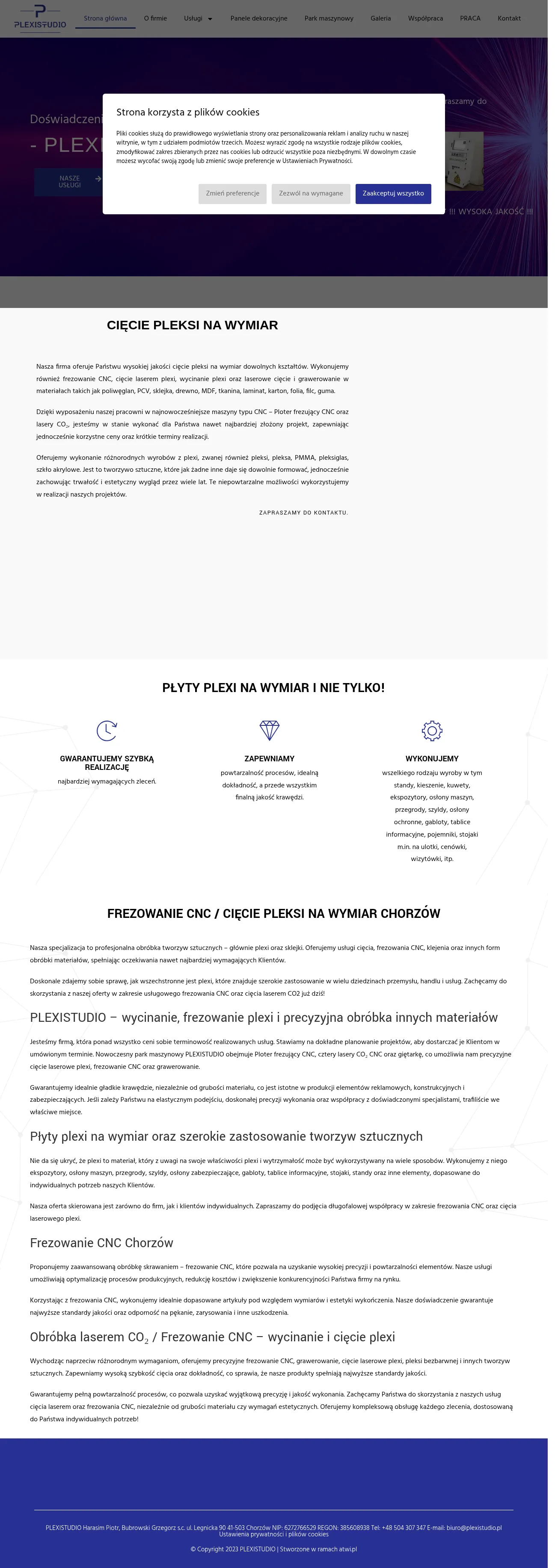 PLEXISTUDIO is a manufacturing company based in Chorzów, Poland, specializing in the professional processing of plastics and wood-based materials. The firm provides precision CNC milling, CO2 laser cutting, and engraving services for both commercial and individual clients. Their production capabilities support a wide range of industrial applications, including the fabrication of machine guards, signage, display stands, and protective partitions. With a focus on technical precision and repeatability, the company serves diverse sectors requiring high-quality plastic components and custom fabrication. They emphasize efficient project management and advanced technological processing to deliver components with smooth edges and tight dimensional tolerances.