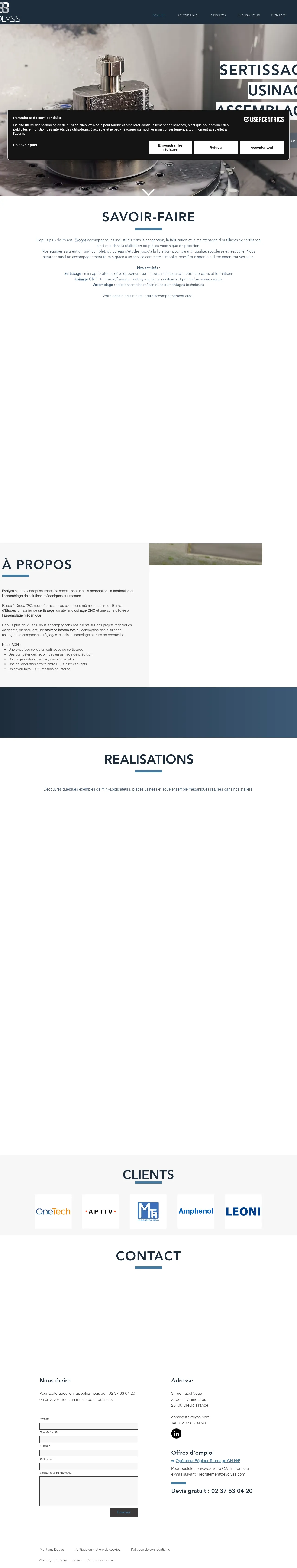Evolyss is a French industrial firm specializing in the design, manufacturing, and maintenance of high-precision crimping tools and mechanical components. With over 25 years of experience, the company provides comprehensive support from engineering and prototype development through to serial production and final assembly. Their expertise covers complex mechanical sub-assemblies, tool optimization, and technical maintenance for industries including food processing, petroleum analysis, and specialized machinery. The facility in Dreux integrates dedicated design, machining, and assembly workshops to ensure complete internal control over production quality and lead times. The company is committed to reactive, solution-oriented service, offering both on-site technical support and customized industrial equipment.
