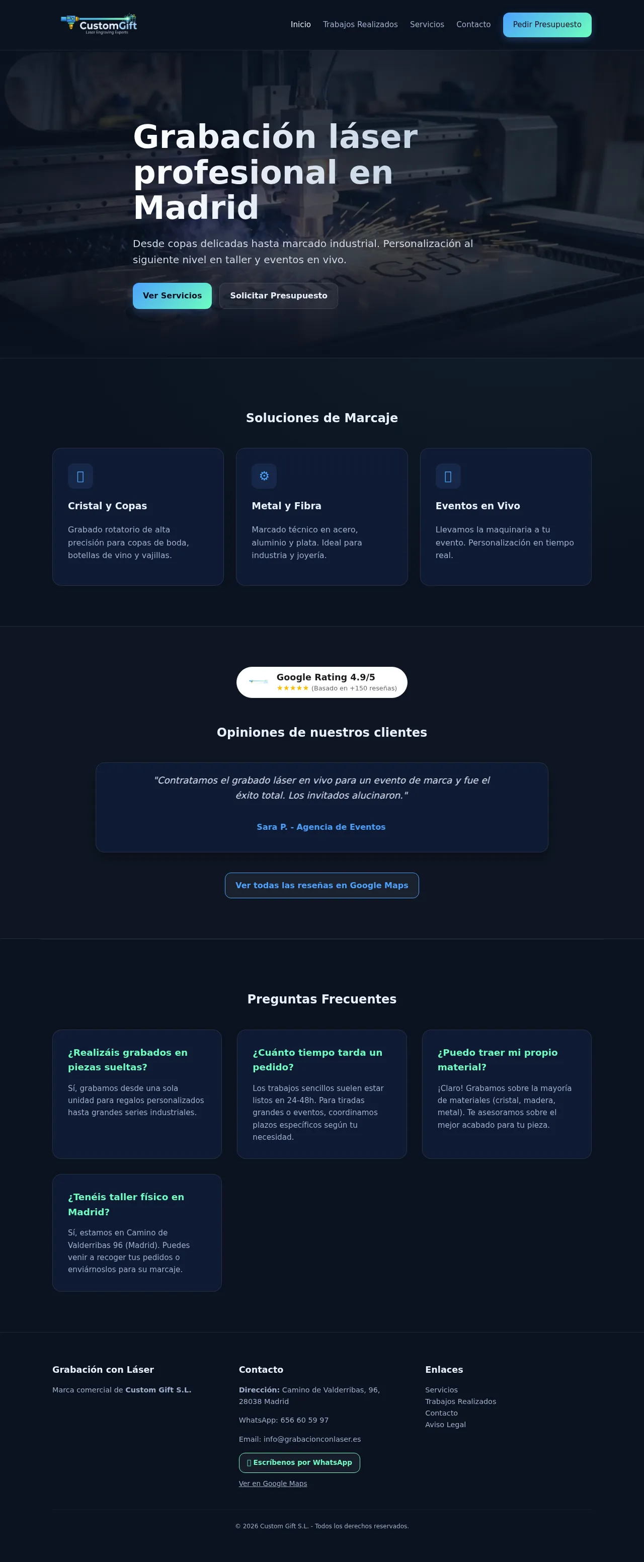 Grabación Láser Madrid provides professional laser marking and engraving services from their facility in Madrid. The company serves a diverse clientele, ranging from private individuals requiring personalized gifts to industrial clients needing technical marking on components. Their capabilities include high-precision rotary engraving for glassware and specialized fiber laser marking for metals used in jewelry and industrial applications. In addition to workshop services, they offer on-site live laser engraving for corporate events and marketing activations. The business is noted for its ability to handle both small, single-unit orders and large-scale production runs with fast turnaround times.