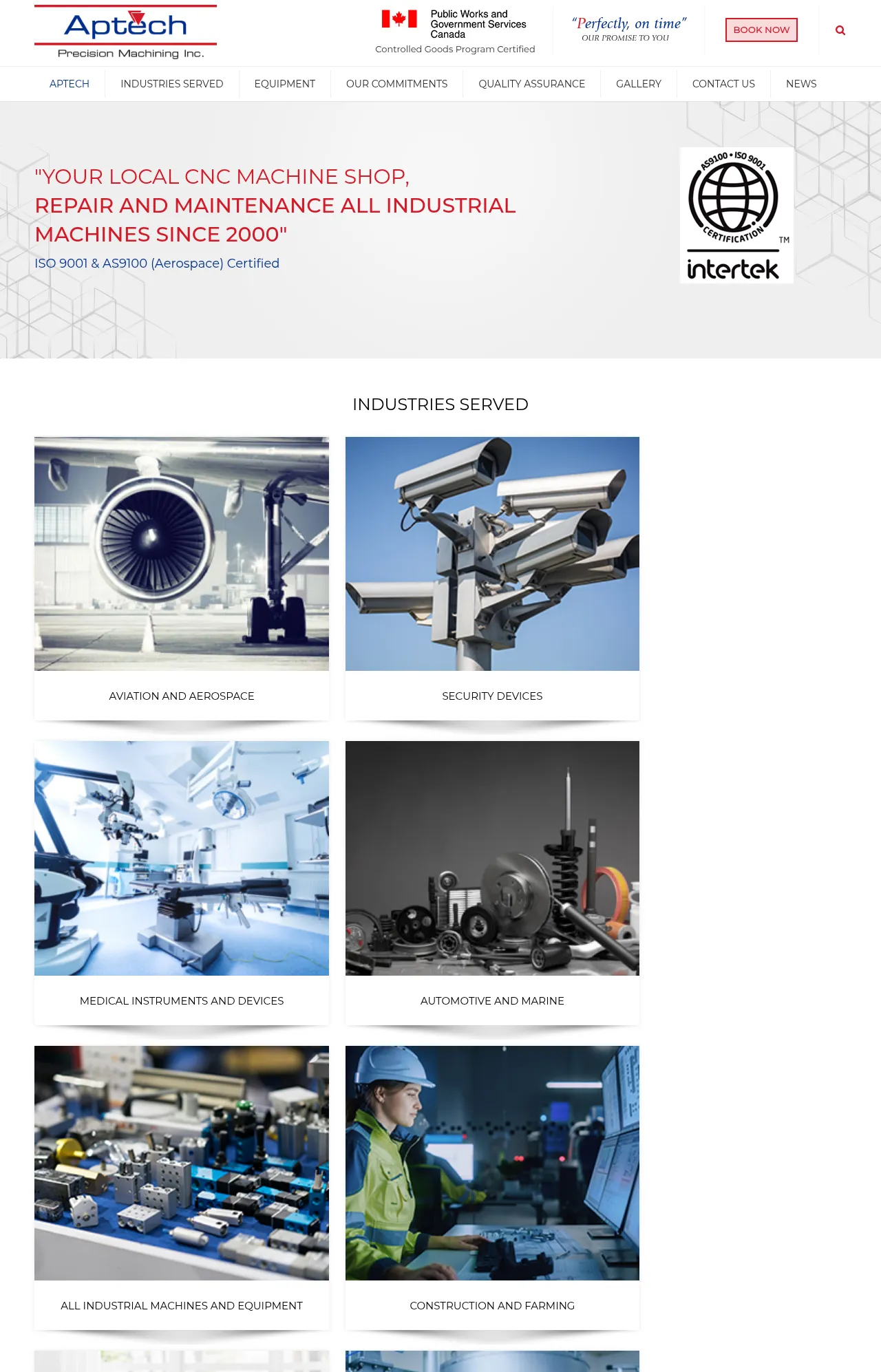 Aptech Precision Machining Inc. is a precision CNC machine shop established in 2000. The company collaborates with clients and design teams to develop cost-effective custom CNC machining solutions, from individual prototypes to small- and large-volume production runs, and provides repair and maintenance for industrial machines. It employs certified Red Seal machinists and operates modern CNC equipment to serve markets including aviation, aerospace, oil and gas, hydro and electric, automotive, medical, mining, food processing, and R&D.