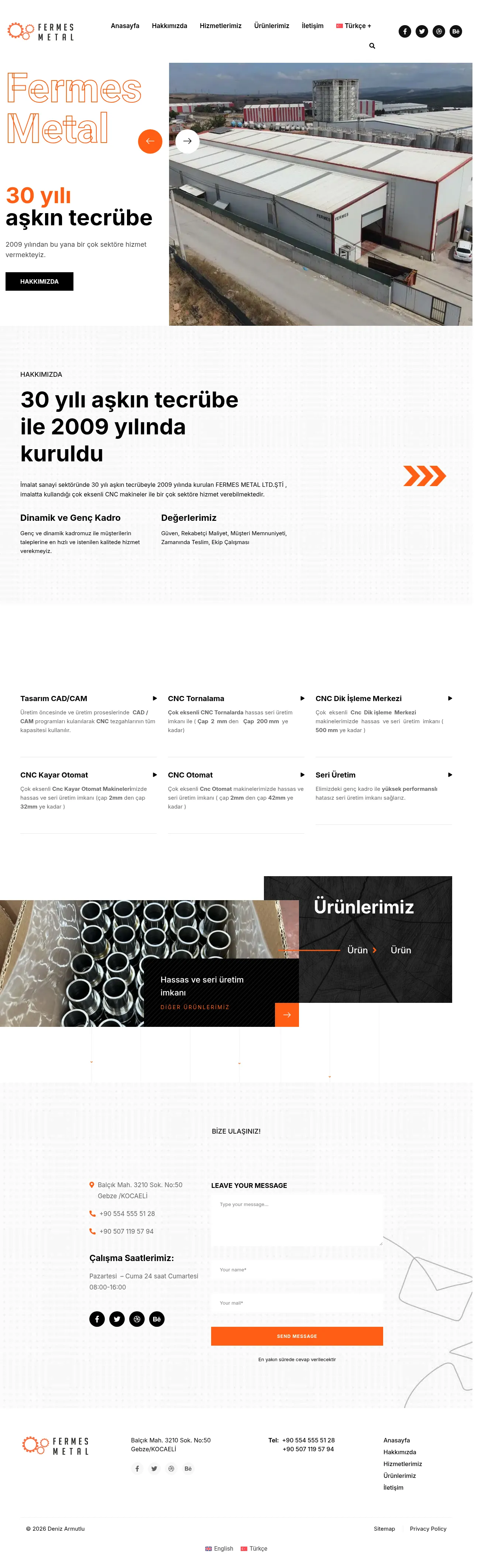Fermes Metal, founded in 2009 and based in Gebze, Kocaeli, provides subcontract machining services to multiple industries. The company operates multi-axis CNC equipment, including lathes, sliding-head automatics and vertical machining centers, to deliver precision and high-volume production. Drawing on more than 30 years of experience in the manufacturing sector, Fermes Metal emphasizes error-minimized serial production and timely response to customer requirements.