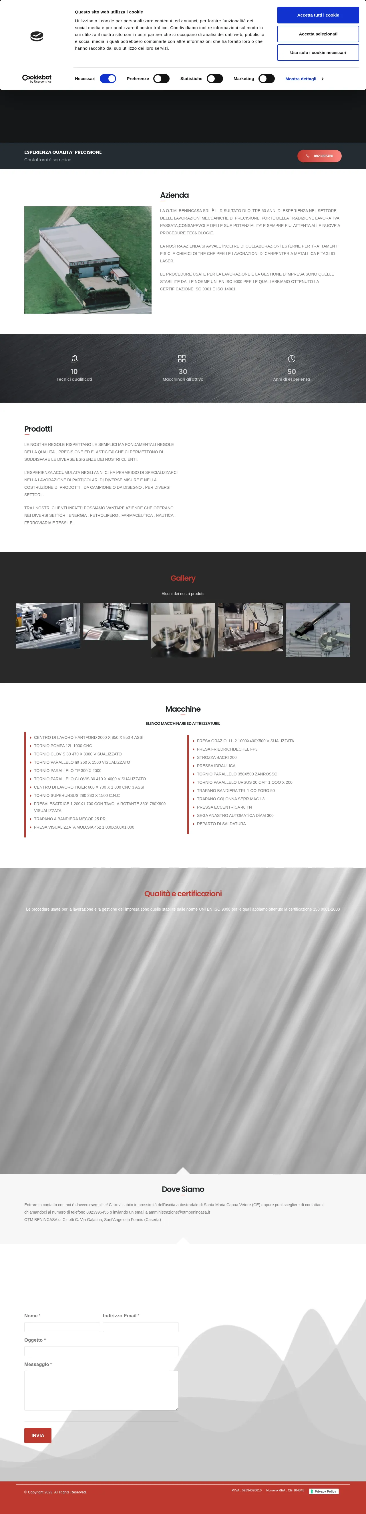 OTM Benincasa is a precision mechanical machining facility with over 50 years of experience in the industry. The company specializes in the construction of bespoke components from customer samples or technical drawings. They serve a diverse range of sectors including energy, petroleum, pharmaceutical, nautical, rail, and textile. Key capabilities include high-precision CNC machining, metal fabrication, welding, and laser cutting through external collaborations. Operating under strict quality standards, the company emphasizes technical expertise, precision, and manufacturing flexibility.