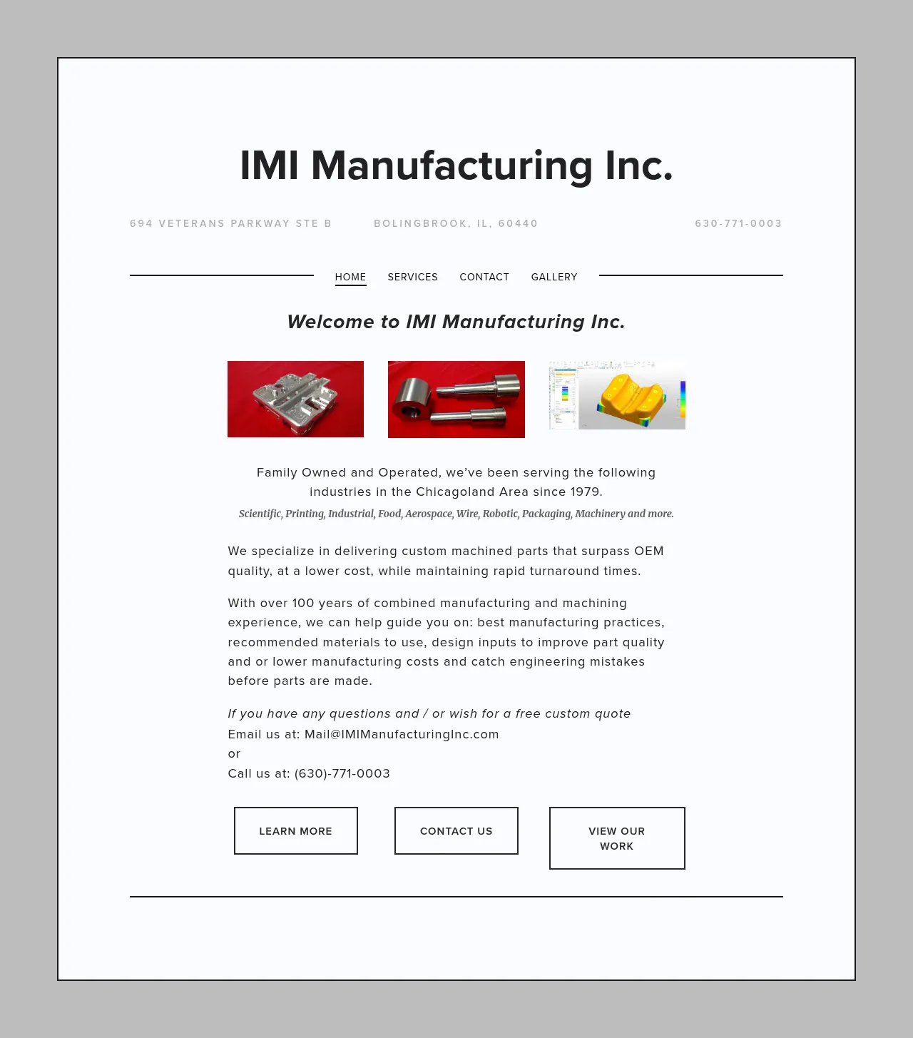 4615, 694 Veterans Pkwy B, Bolingbrook, IL 60440, USA, Bolingbrook, Illinois, United States(630) 771-0003Mail@IMIManufacturingInc.comhttp://imimanufacturinginc.com/