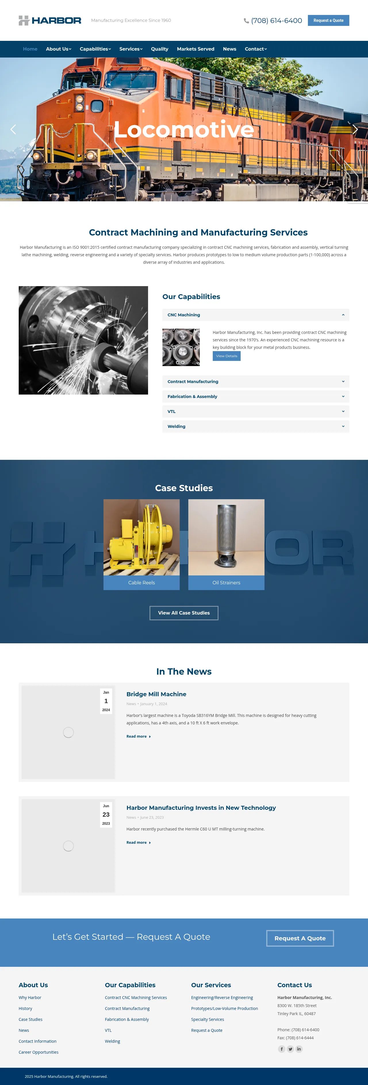 Harbor Manufacturing is a contract machining and metal fabrication firm providing comprehensive manufacturing solutions since 1960. The company specializes in CNC machining, including prototype and low-volume production, as well as complex subassembly work and industrial painting. They serve a diverse range of industries, including locomotive, freight, trucking, agriculture, and mining. With internal capabilities for engineering, welding, and rigorous testing, they offer a turnkey approach to metal component production. The facility manages complex fabrication needs through a combination of traditional machining and high-tech milling and turning technology.