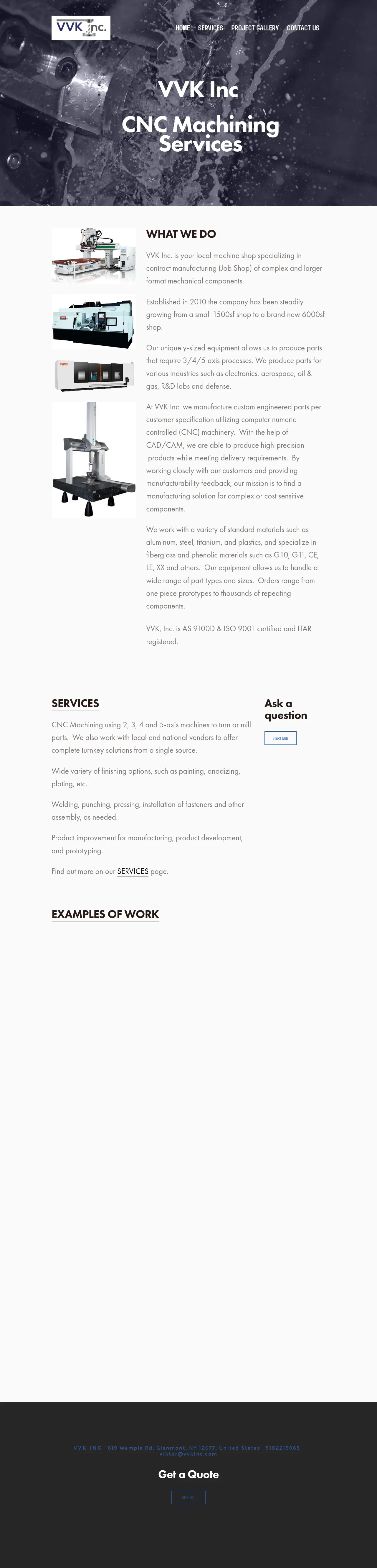 VVK Inc. is a contract manufacturing shop based in Glenmont, New York, specializing in the production of complex and large-format mechanical components. Established in 2010, the company operates a 6,000-square-foot facility providing comprehensive machining, assembly, and turnkey manufacturing solutions. Their technical capabilities span multi-axis milling and turning, welding, and various finishing processes including plating and powder coating. VVK Inc. serves clients by assisting with product development, prototyping, and improving designs for better manufacturability and function.