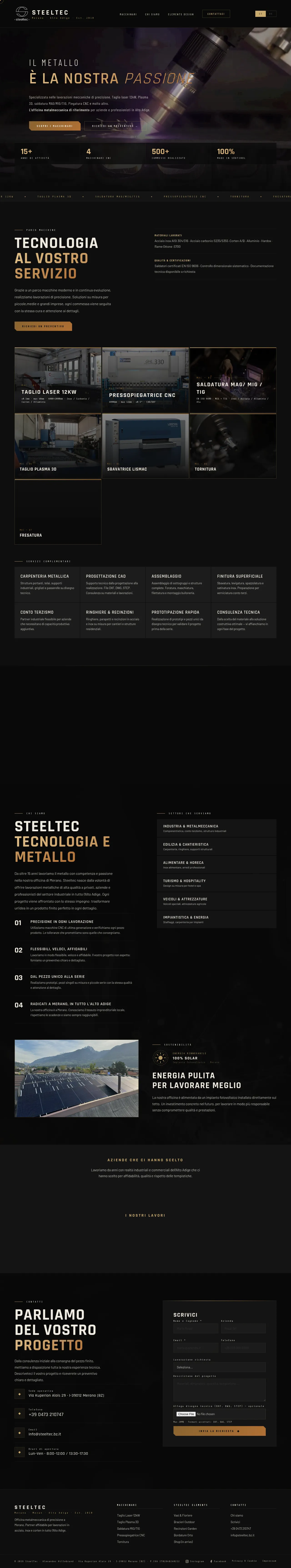SteelTec is a precision metalworking company based in Merano, specializing in high-quality steel, stainless steel, and Corten steel fabrication. The firm provides a comprehensive service range that includes technical design, initial consultation, and final production. Serving clients across South Tyrol, they cater to both industrial subcontracting needs and architectural design projects. Their technical capabilities feature high-power laser cutting, 3D plasma cutting, and precision CNC bending. The company is also known for producing custom architectural elements such as modular fencing, designer fire pits, and durable garden planters.