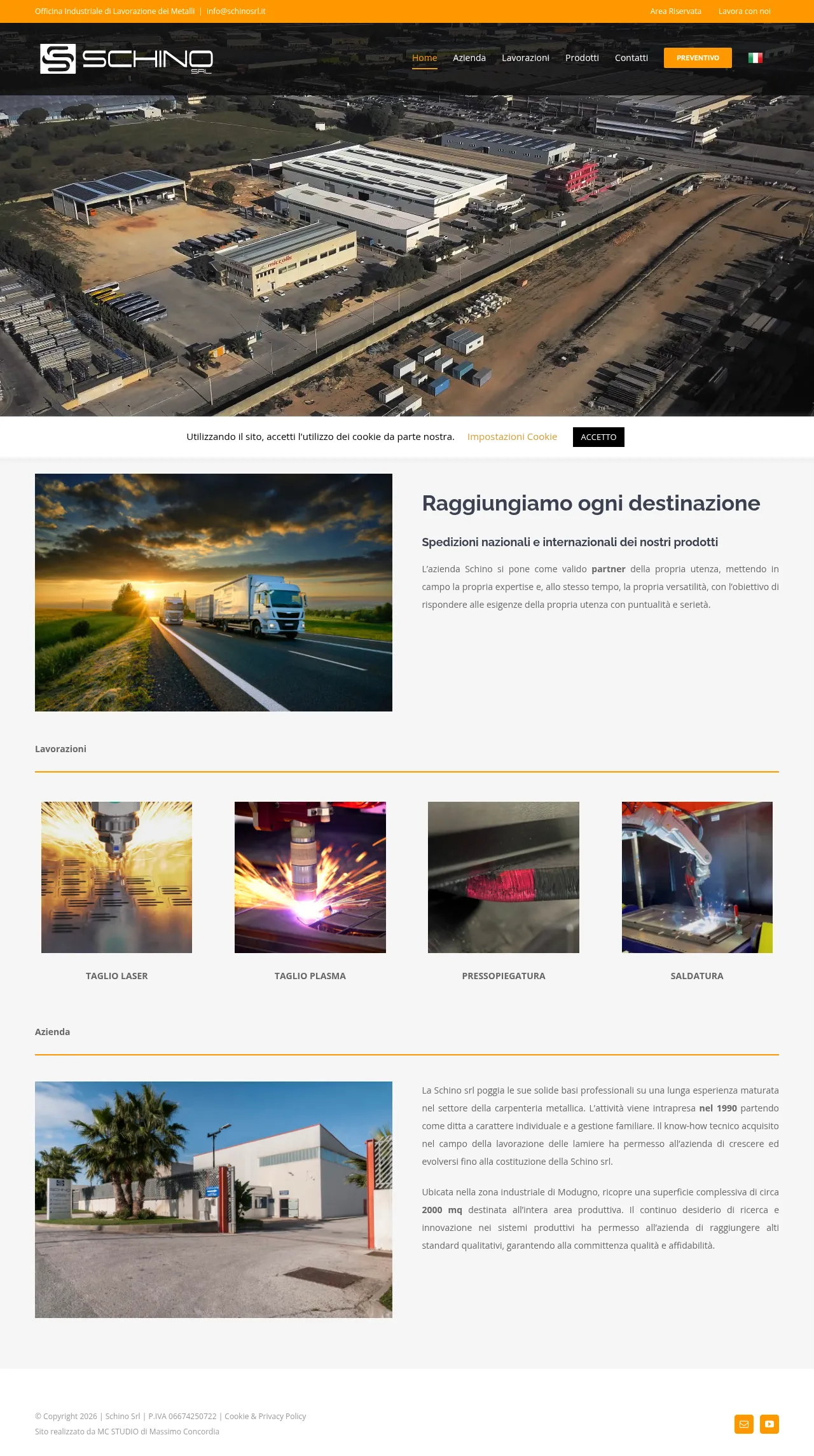 Schino srl is an industrial metalworking workshop specializing in sheet metal fabrication and structural metal carpentry. Founded from a family-run business, the company provides cutting, forming, welding and surface treatment services. Operations include both manual and automated welding as well as mechanical machining and finishing processes.