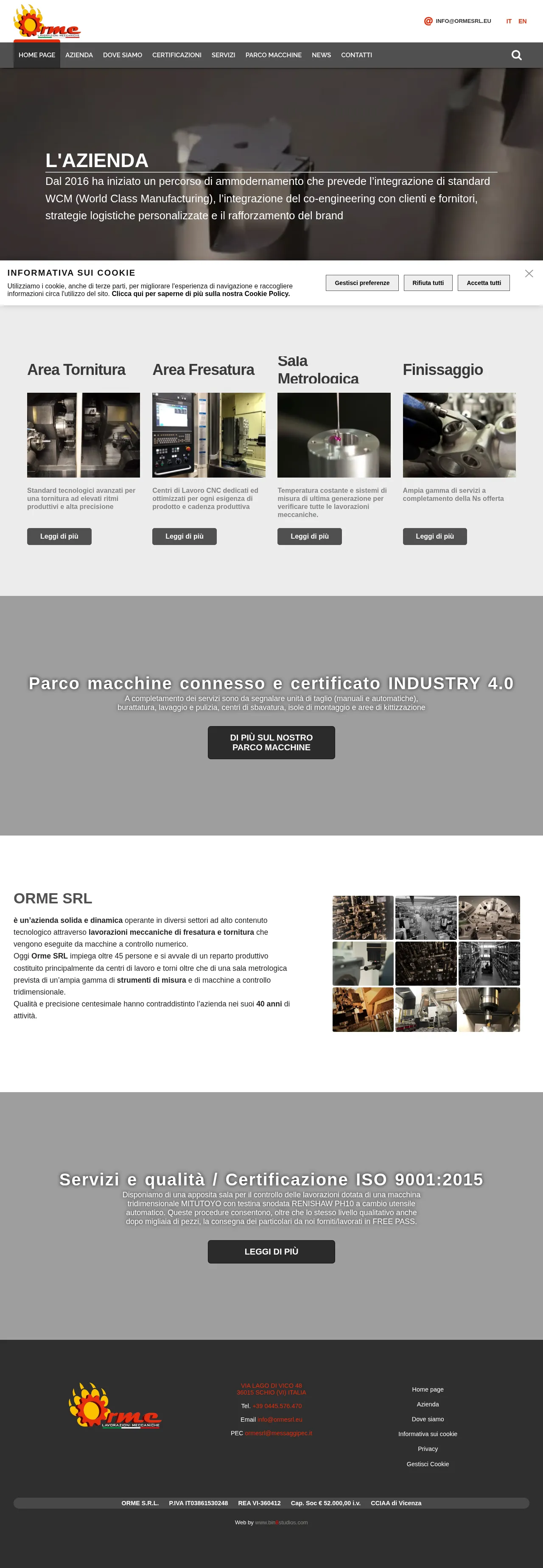 ORME S.R.L. is an Italian manufacturing company specializing in high-precision mechanical milling and turning processes. With over 40 years of experience, the company utilizes advanced numerical control machinery to provide complex machining services for various technological sectors. Their production facility integrates WCM standards, co-engineering support, and customized logistics to ensure operational excellence. Quality control is maintained through a dedicated metrology laboratory equipped with high-precision three-dimensional measuring systems. The company serves industrial needs ranging from component prototyping to high-volume production.