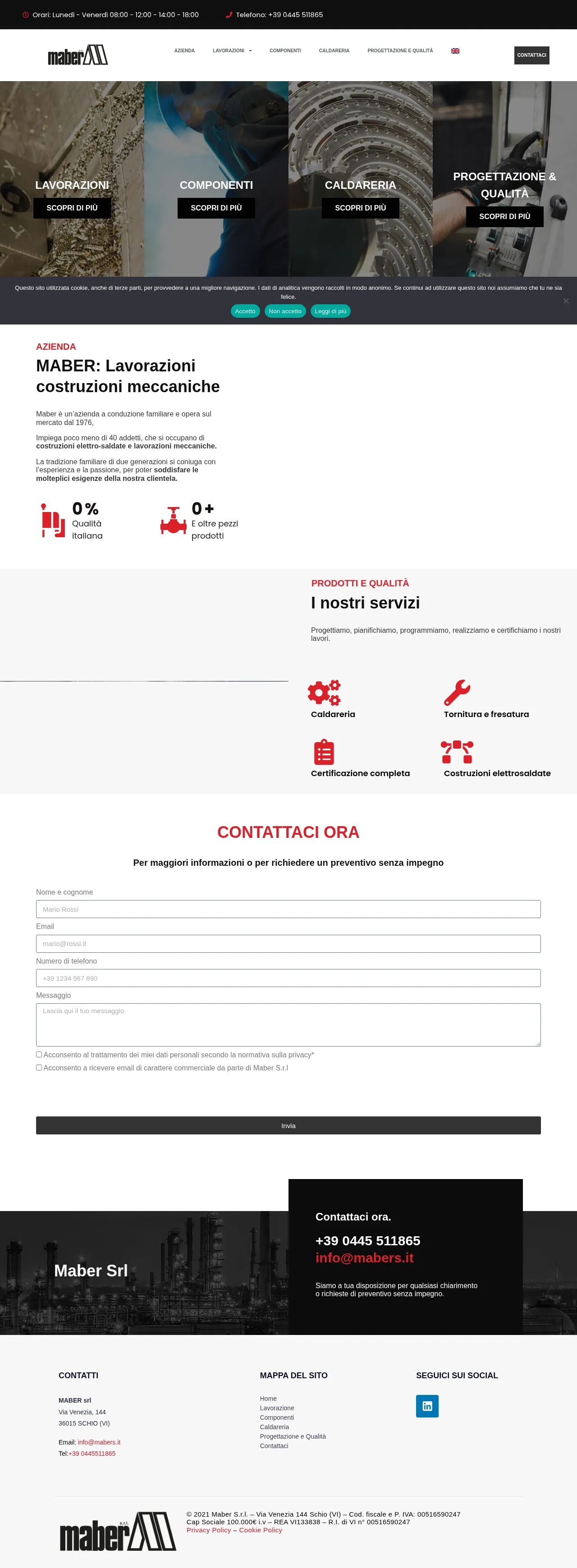 Maber S.r.l. is an industrial manufacturing company based in Schio, Italy, specializing in high-precision mechanical machining and complex metal constructions. The firm provides integrated services ranging from initial design and structural calculation to CNC machining, welding, and final assembly. Their expertise covers the production of components for vacuum systems, energy sectors, and heavy industrial machinery, utilizing large-scale turning and milling capabilities. With a strong focus on quality and compliance, the company manages both large-diameter turning and custom electro-welded structures. Maber serves a diverse international client base by combining multi-generational engineering experience with modern CAD/CAM technology.