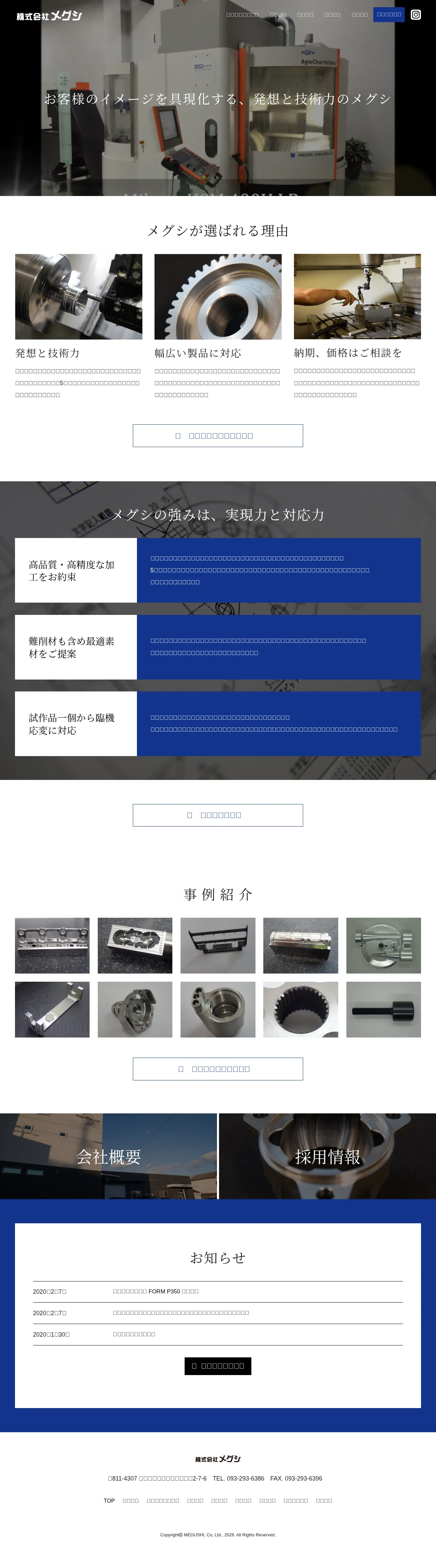 株式会社メグシ provides precision machining services for a diverse range of industries including aerospace, medical, and robotics. The company specializes in complex components and high-difficulty processing, utilizing both 5-axis machining centers and wire electrical discharge machines. They offer end-to-end production support, spanning from material procurement and prototyping to final inspection and shipping. The facility is equipped to handle production volumes from single prototypes to small-to-medium lot manufacturing. Their core strengths include advanced technical problem-solving and the ability to machine a wide variety of difficult-to-cut materials.