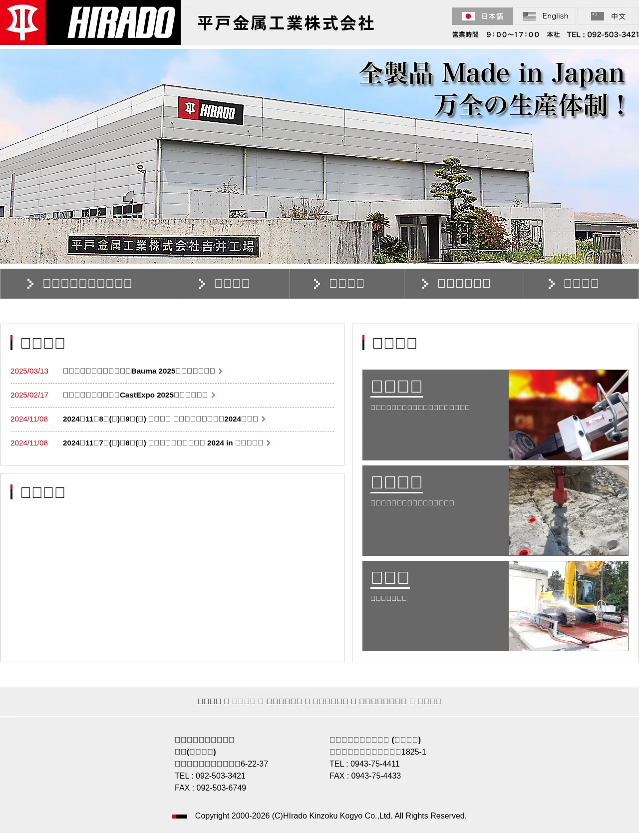 Hirado Kinzoku Kogyo Co., Ltd. is a specialized Japanese manufacturer of construction and foundry machinery. The company designs and produces hydraulic demolition equipment, rock splitters, rock drills, and hydraulic pumps for international markets. Their solutions are engineered for high performance in challenging environments, including projects requiring low noise, vibration, and dust control. Serving both the construction and metal casting industries, the company provides tools for concrete demolition, site preparation, and foundry casting processes. Hirado integrates decades of technical expertise with continuous innovation to support civil engineering and industrial manufacturing operations globally.
