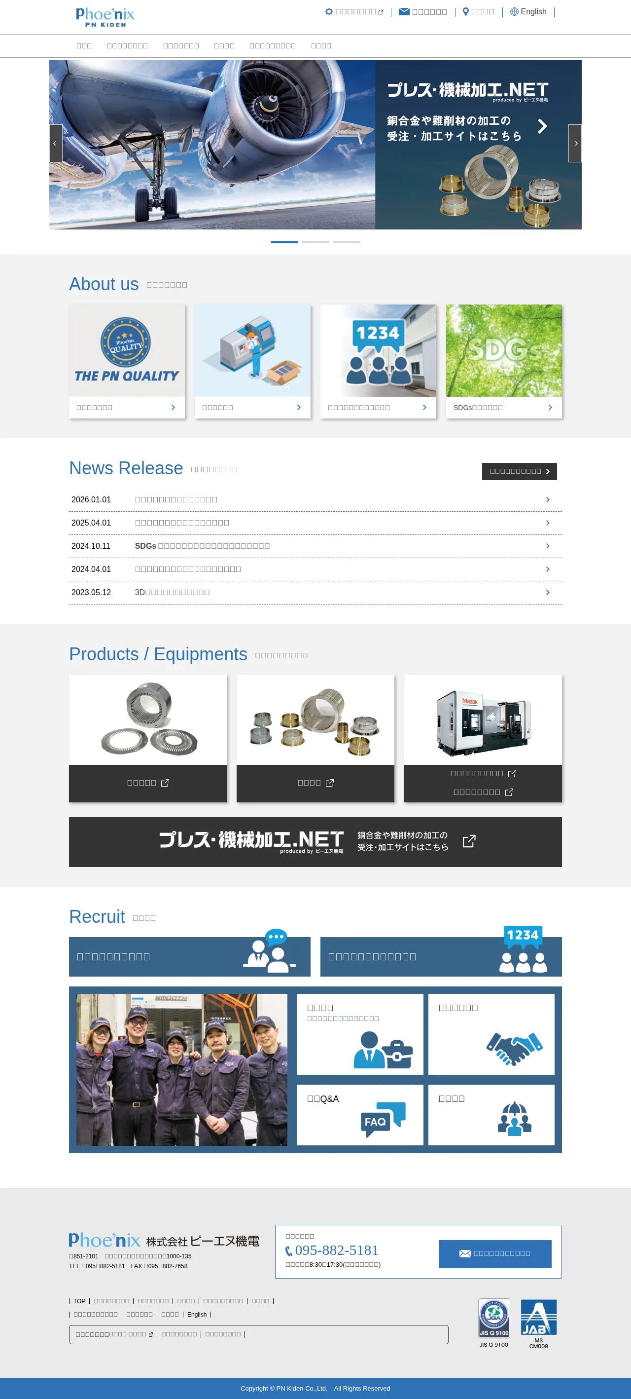 A manufacturing company based in Nagasaki Prefecture, Japan, providing metal press (stamping) processing and general machining services. It operates production facilities for manufacturing metal components and parts. The company serves industrial customers requiring stamped and machined metal work.