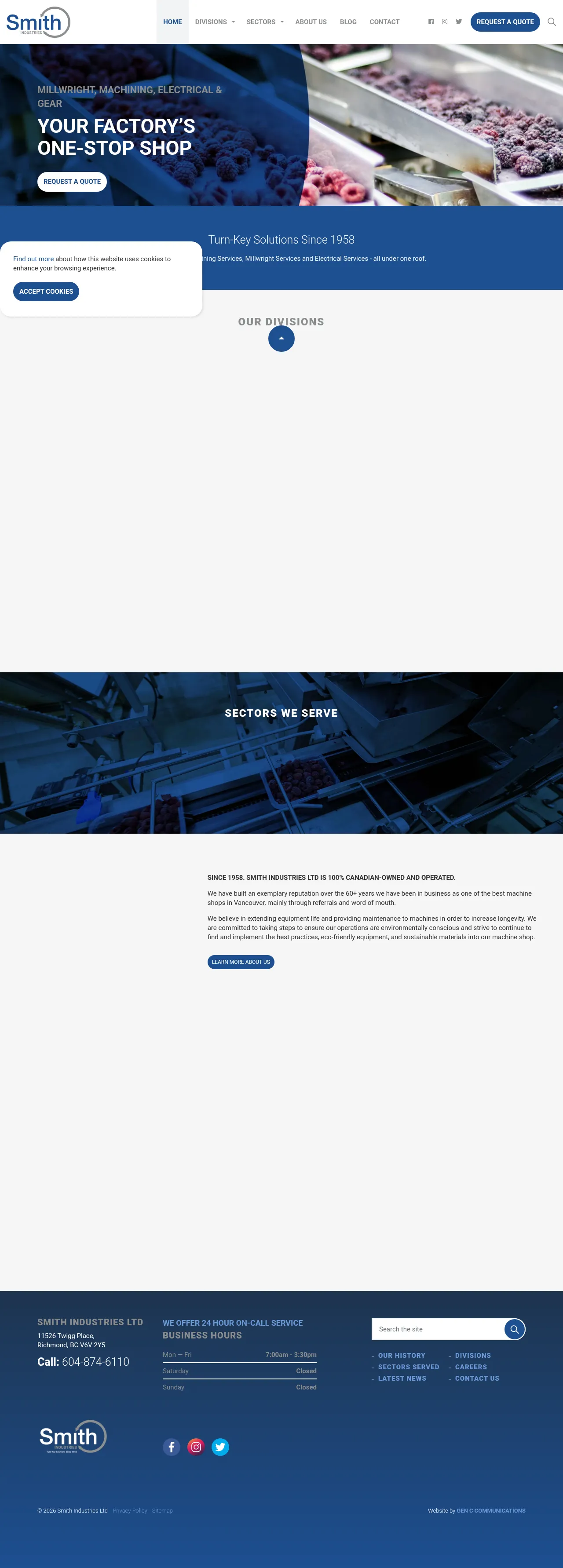 Established in 1958, Smith Industries Ltd is a Canadian-owned industrial contractor providing comprehensive machining, millwright, and electrical services. The company specializes in turn-key industrial solutions, including machinery installation, disassembly, maintenance, and custom gear manufacturing. Serving sectors such as graphics, HVAC, and elevator manufacturing, the firm emphasizes precision engineering and equipment longevity. Their facility in Vancouver offers a integrated approach that combines electrical contracting with full-service machine shop capabilities to handle complex industrial projects.