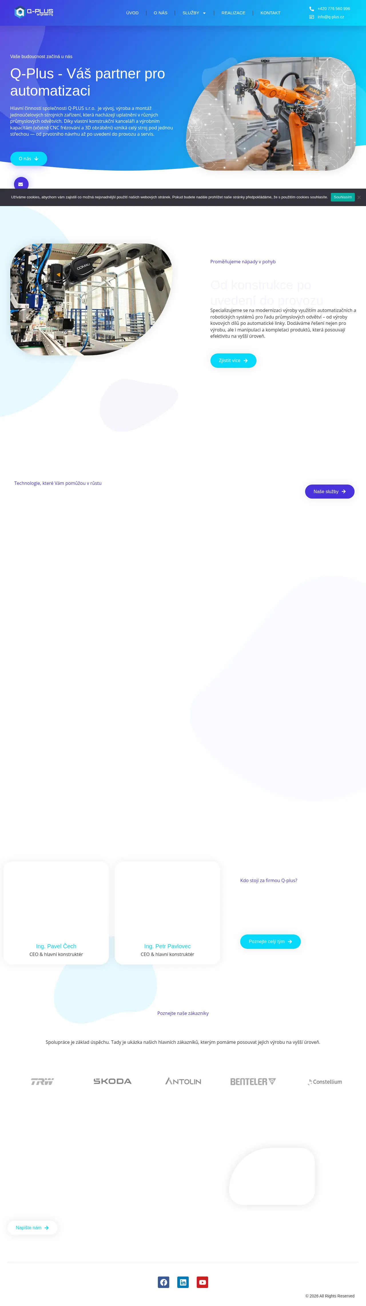 Q-plus specializes in industrial automation and robotic systems designed to enhance production efficiency and reduce manual labor costs. The company provides end-to-end services including custom design, assembly, PLC and robot programming, and equipment installation. Their portfolio covers the development of single-purpose machines, conveyor systems, and specialized assembly workstations for various manufacturing sectors. Additionally, they offer comprehensive technical support, maintenance services, and metalworking capabilities such as welding and powder coating. The firm focuses on delivering tailored solutions that improve material handling, product assembly, and overall manufacturing workflow.