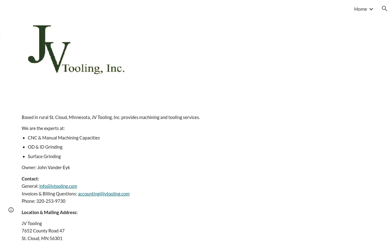 JV Tooling, Inc. is a precision machining and tooling company located in St. Cloud, Minnesota. The organization specializes in providing high-quality tooling solutions for a variety of industrial applications. With a focus on technical expertise, the company supports manufacturing requirements through reliable surface grinding processes. They maintain a commitment to regional service, catering to the specific needs of their client base. The facility operates as a dedicated partner for businesses seeking precision tooling and reliable machining support.