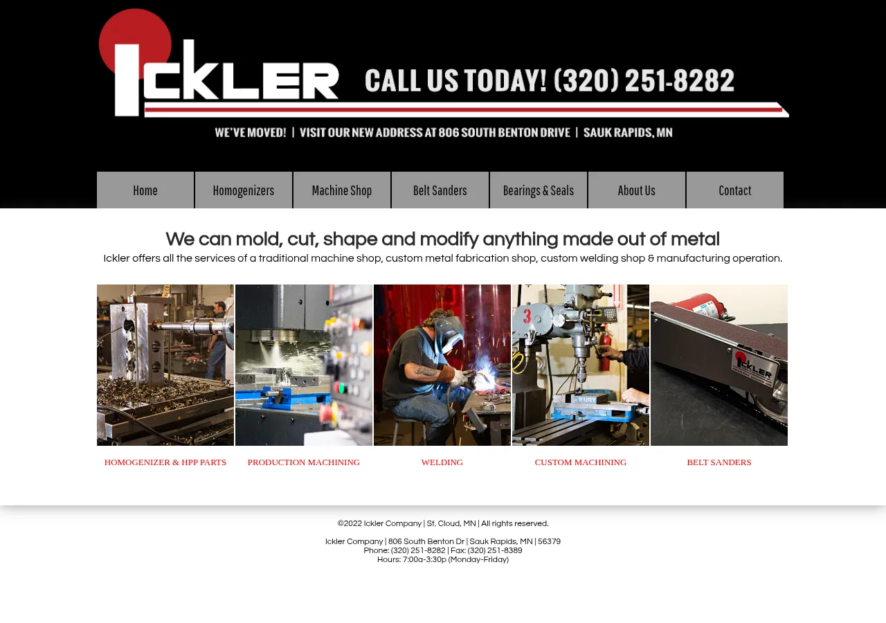 Ickler Company is an industrial manufacturing firm based in Sauk Rapids, Minnesota, specializing in metal processing and precision fabrication. The company offers a wide range of services including CNC machining, welding, and mechanical prototyping. Their technical expertise allows them to mold, cut, shape, and modify various metal components to meet client specifications. In addition to custom fabrication, the firm designs and manufactures specialized equipment such as homogenizers and belt sanders. They serve diverse industrial sectors requiring high-quality metal components and reliable engineering solutions.
