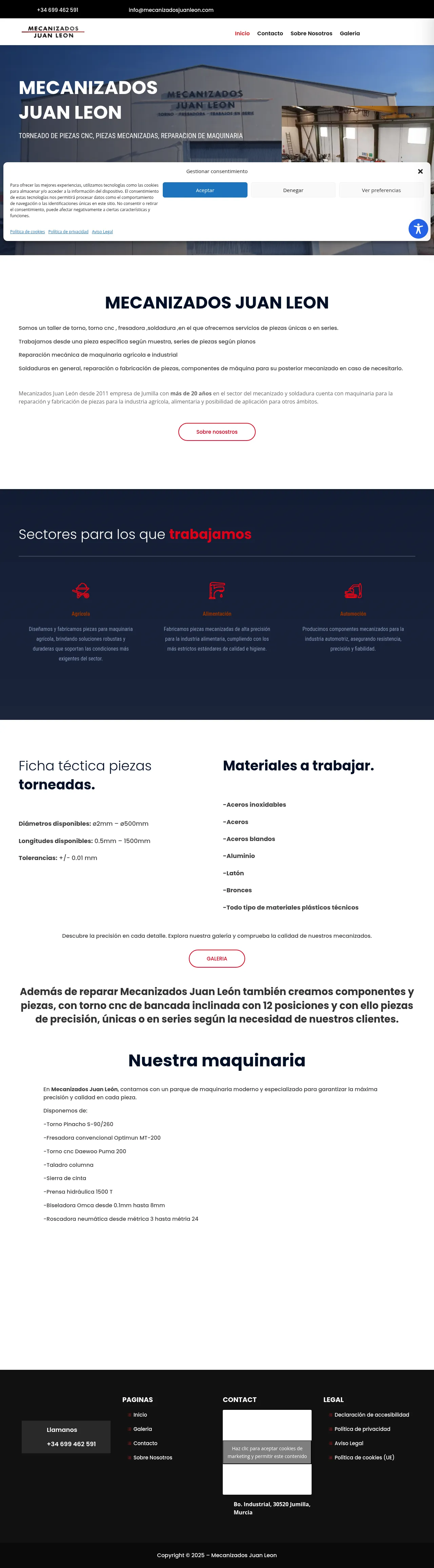Mecanizados Juan León is a precision machining and fabrication facility based in Jumilla, Spain, serving the agricultural, food, and automotive sectors since 2011. The company specializes in CNC turning, mechanical repair, and custom welding services, handling both single prototype parts and series production based on client designs. Their capabilities include precision component manufacturing, machinery repair, and the assembly of complex parts to meet demanding industrial standards. By maintaining a modern machine park, the firm ensures high levels of precision and quality control across all projects. They work with a diverse range of technical materials to provide robust and durable solutions tailored to specific industrial requirements.