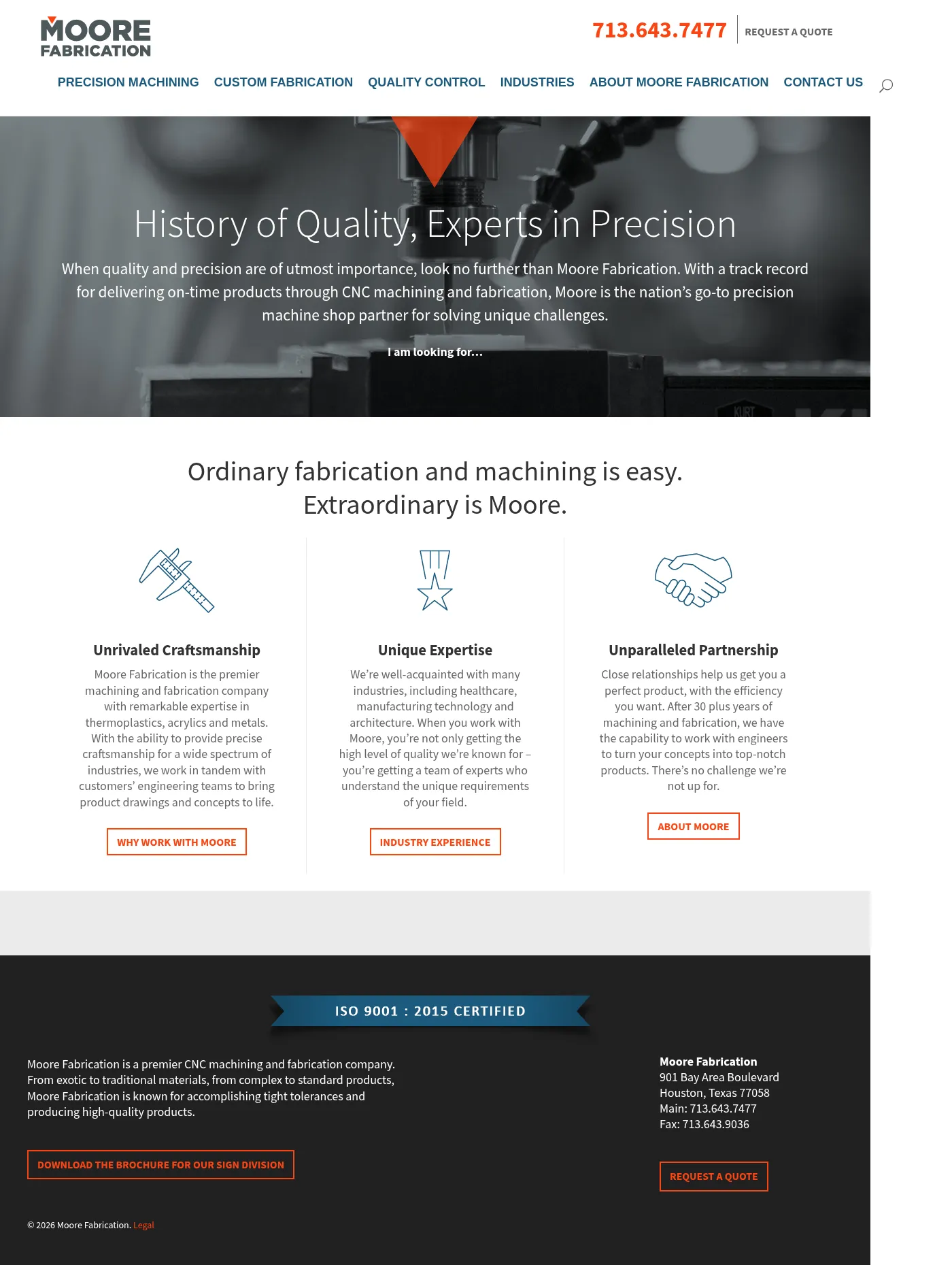 Moore Fabrication is a provider of precision CNC machining and custom fabrication services based in Houston, Texas. The company specializes in manufacturing high-precision components using a variety of traditional and exotic materials, with specific expertise in complex plastic and metal parts. They serve a diverse range of sectors, including the semiconductor, healthcare, energy, and architectural industries. By utilizing comprehensive quality control protocols and advanced CNC processes, the company delivers solutions ranging from rapid prototypes to production-scale quantities. Moore Fabrication is recognized for its ability to meet tight tolerances and provide tailored engineering support for mission-critical assemblies.