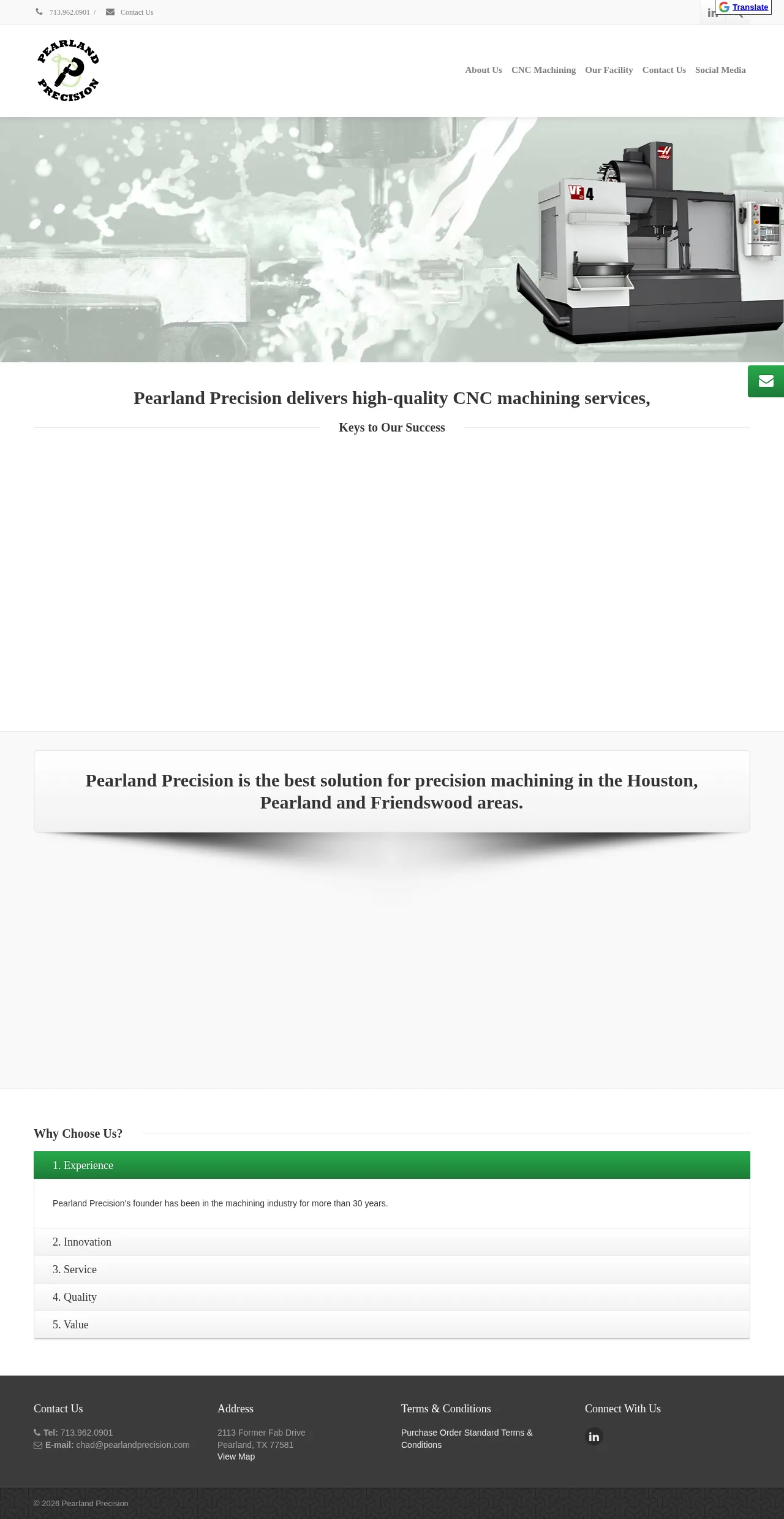 Pearland Precision is a precision machining company based in Texas specializing in CNC turning and milling services. The company serves the oil and gas, aerospace, and packaging industries by delivering high-quality, defect-free parts through lean manufacturing principles. They utilize computer-aided 3D design and advanced CAM software to ensure accurate fabrication from prototype to full production runs. With a focus on supply chain reliability, the facility emphasizes rigorous quality control and customized packaging solutions to meet specific client requirements.